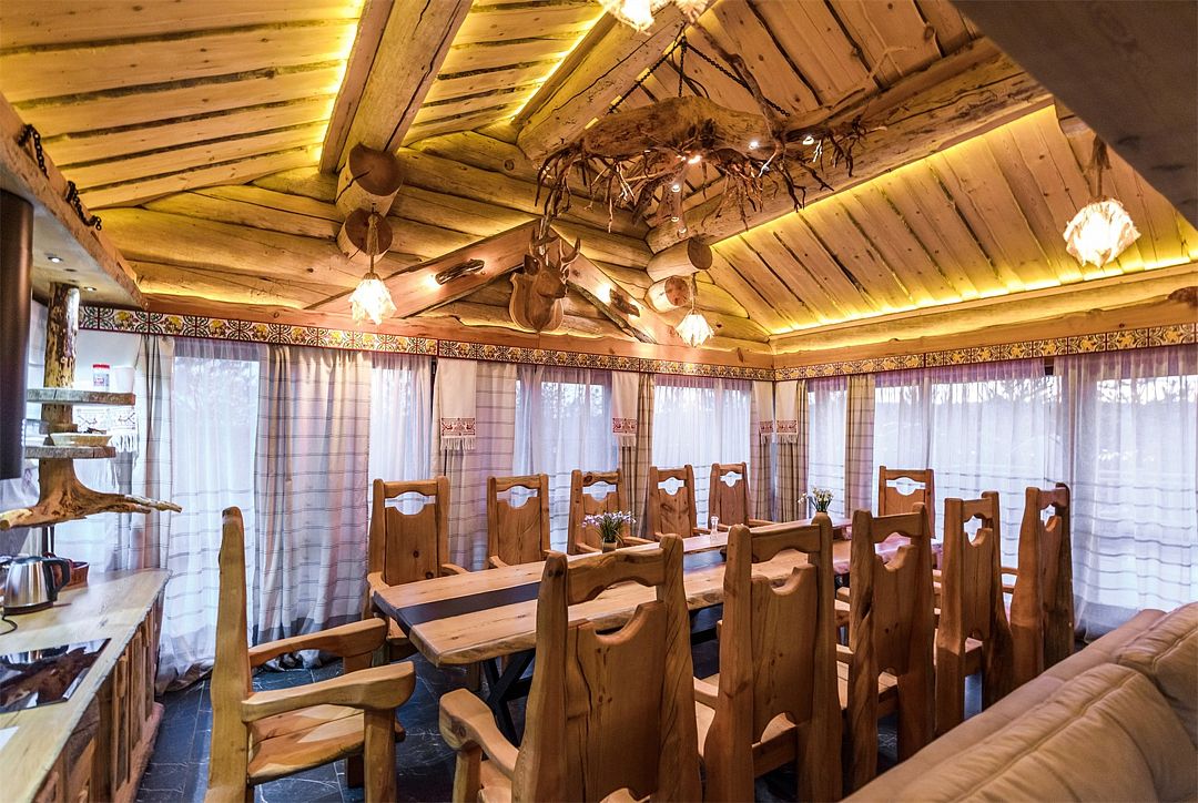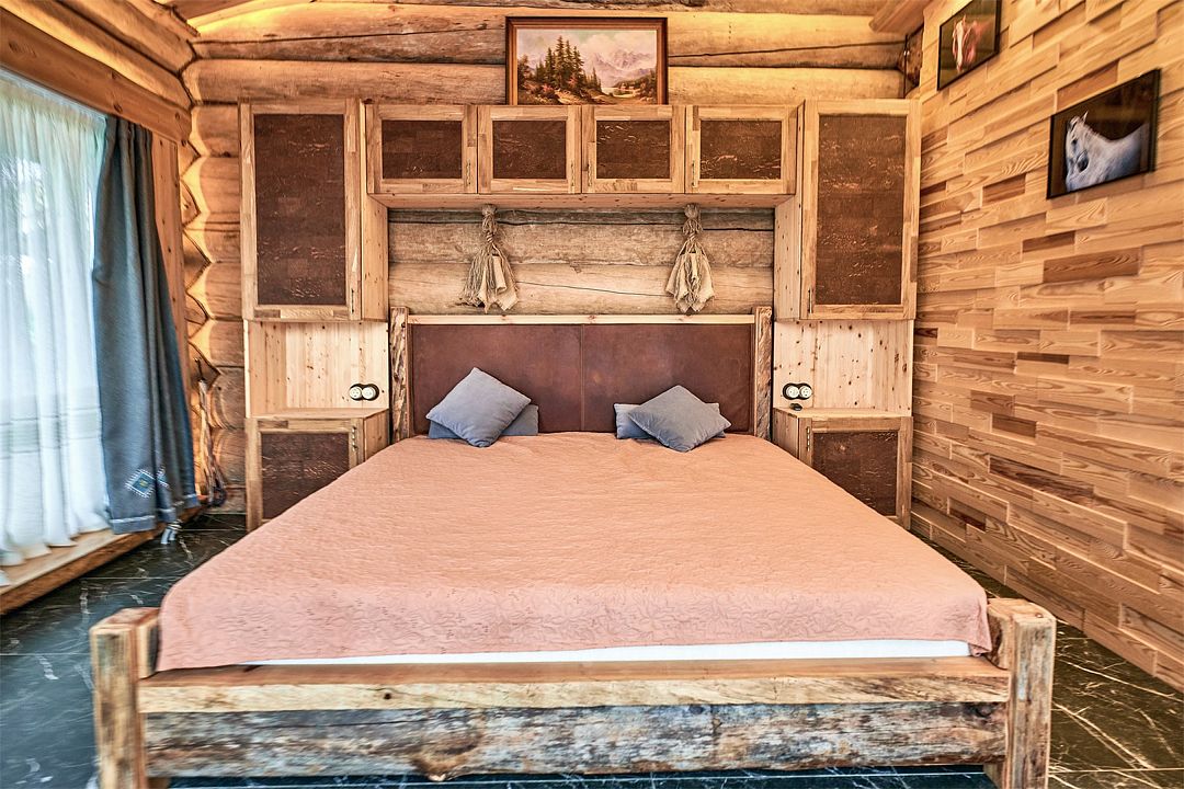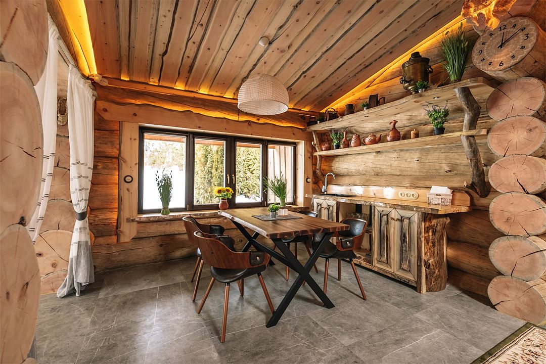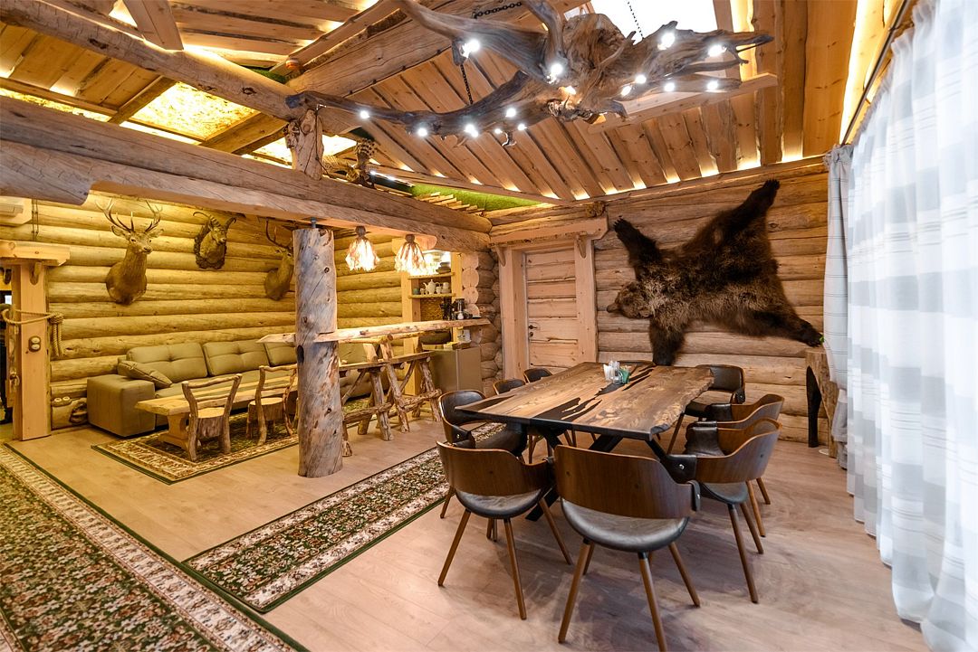 В коттедже клуба есть просторная гостиная с камином, барной зоной, мягкой мебелью и множеством оригинальных деталей в интерьере. Кухня оборудована всей необходимой бытовой техникой, а в двух уютных спальнях с комфортом могут разместиться сразу несколько семей. В гостиной диван также раскладывается, трансформируясь в 2 полноценных спальных места.