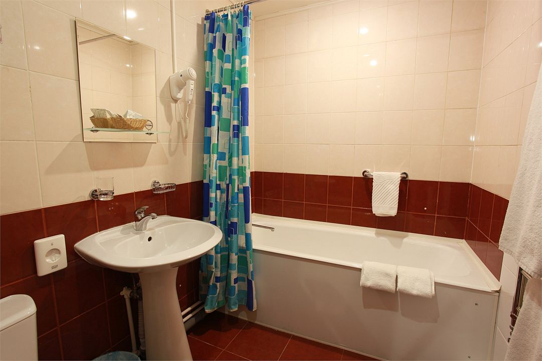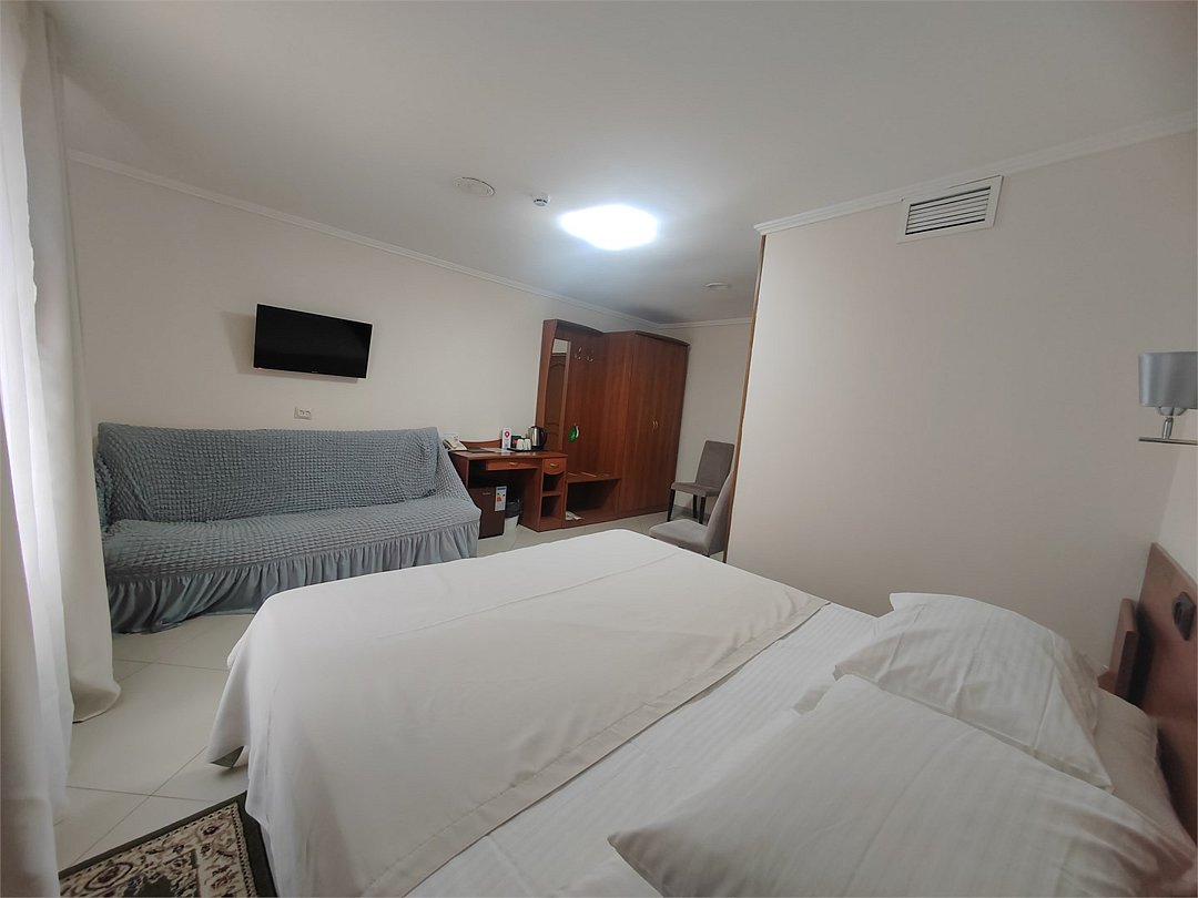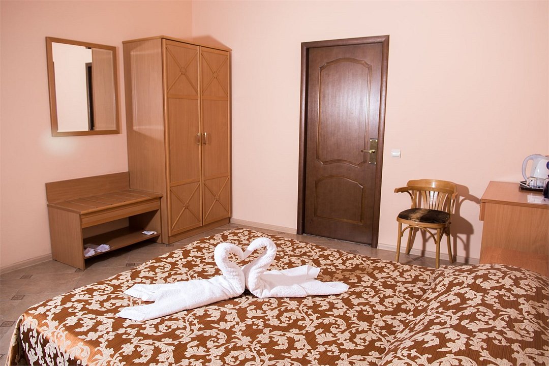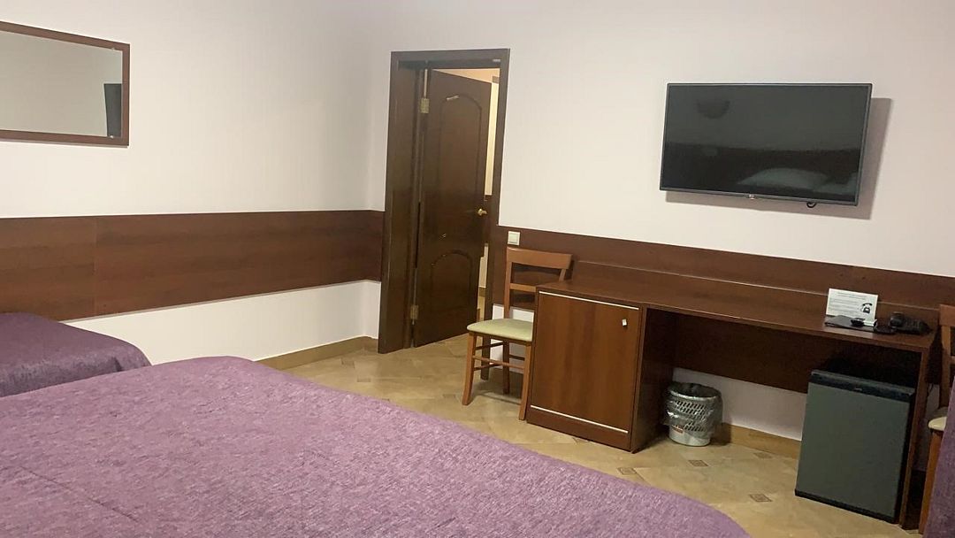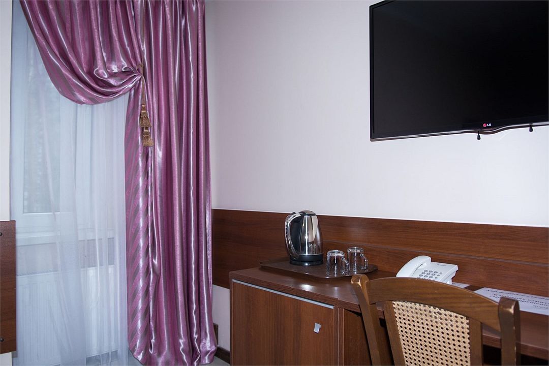 кабельное телевидение, Wi-Fi, фен, ванна, банные полотенца, тапочки, две односпальные кровати, тумбы, стулья, шкаф для одежды, вешалки, багажная тумба, зеркало, обслуживание номеров, чайник, унитаз, раковина, кулер на этаже, стаканы, столовые приборы, стол, внутренний телефон, мини-холодильник, можно с питомцамиВ гостиничном номере