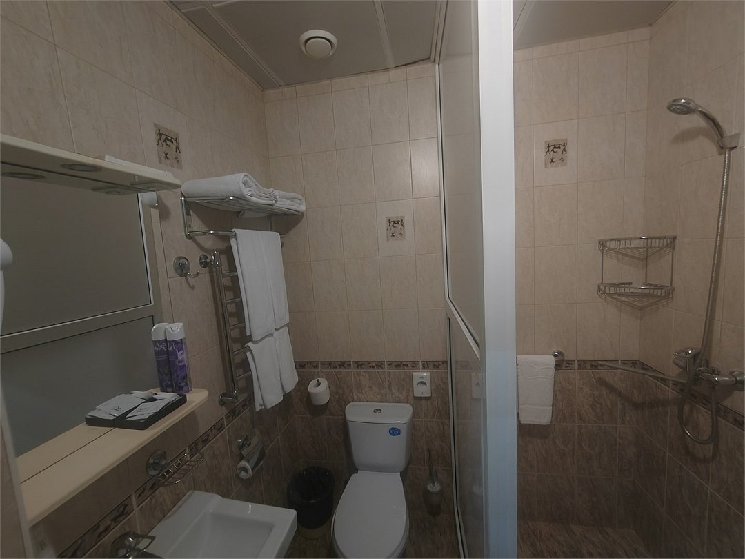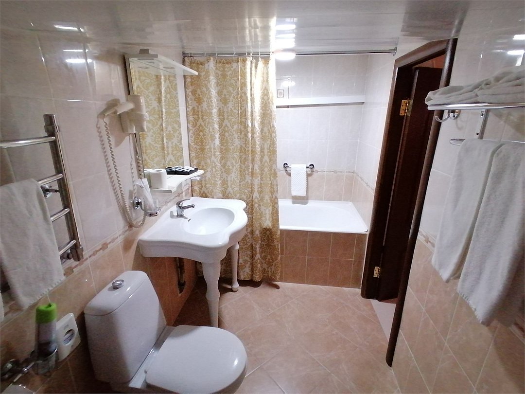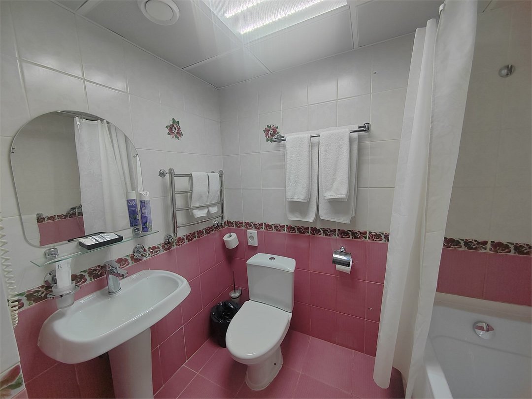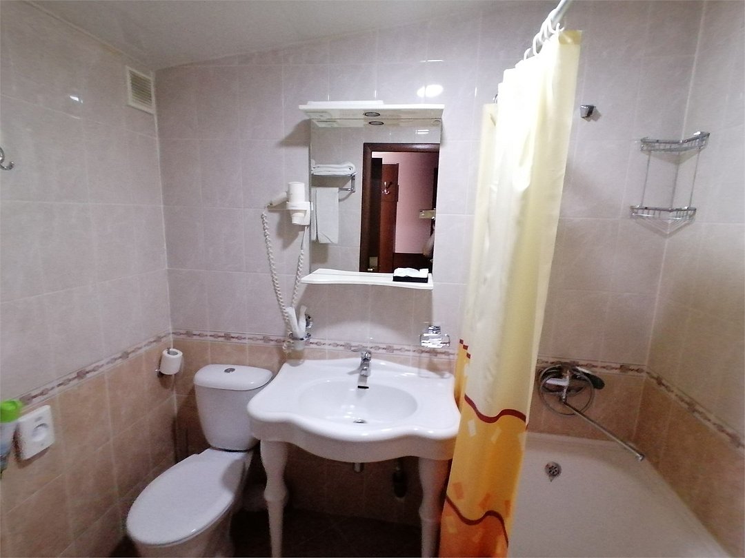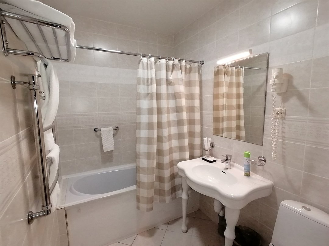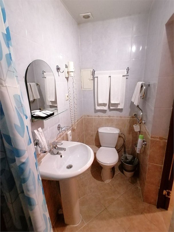 кабельное телевидение, Wi-Fi, светильник, фен, электронные замки, ванна, банные принадлежности, банные полотенца, тапочки, косметические средства, стулья, шкаф для одежды, вешалки, письменный стол, зеркало, набор посуды, чайник, унитаз, раковина, отопление, душ, кулер на этаже, вид во двор, стаканы, столовые приборы, стул, стол, туалетные средства, туалет, вид на парк, внутренний телефон, телевизор с плоским экраном, мини-холодильник, гостиничная парфюмерия, мансардные окна, можно с питомцамиВ гостиничном номере