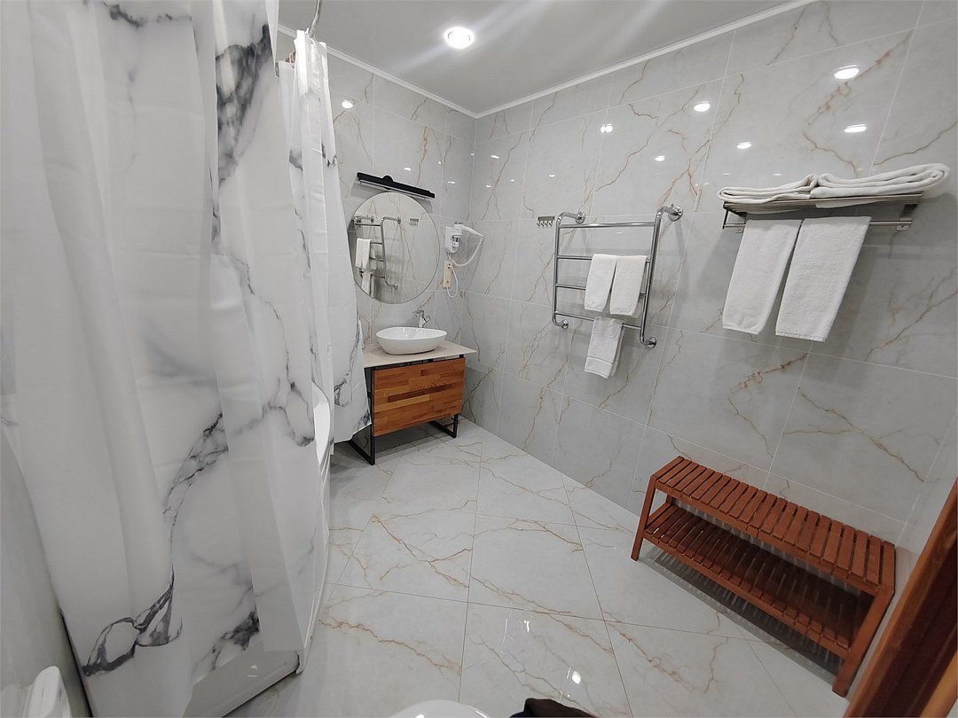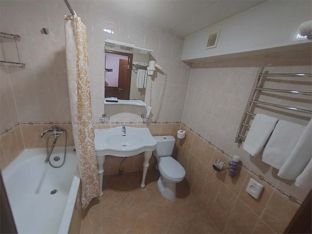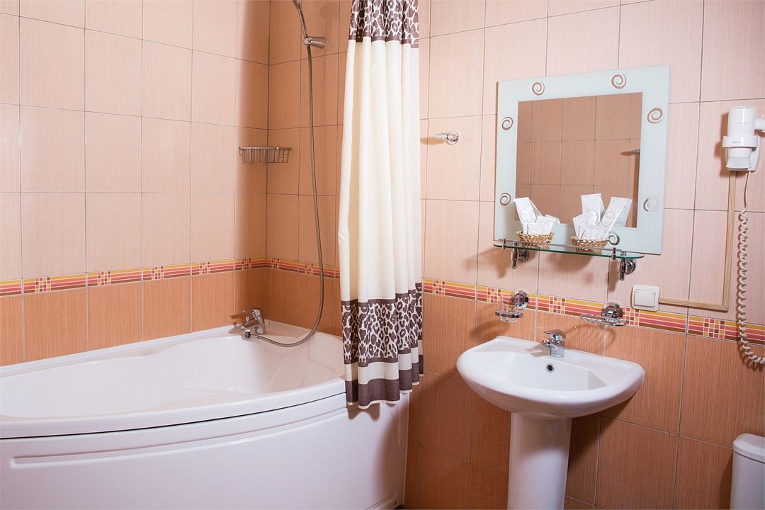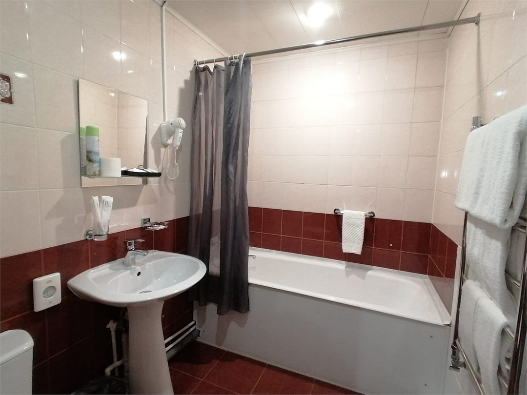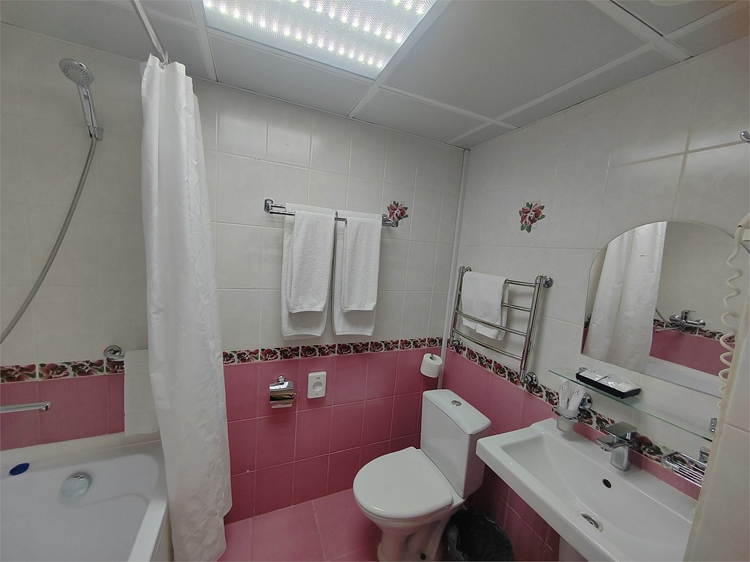 кабельное телевидение, Wi-Fi, светильник, фен, электронные замки, ванна, банные принадлежности, банные полотенца, тапочки, косметические средства, стулья, шкаф для одежды, вешалки, письменный стол, зеркало, набор посуды, чайник, унитаз, раковина, отопление, душ, кулер на этаже, вид во двор, стаканы, столовые приборы, стул, стол, туалетные средства, туалет, вид на парк, внутренний телефон, телевизор с плоским экраном, мини-холодильник, гостиничная парфюмерия, мансардные окна, можно с питомцамиВ гостиничном номере