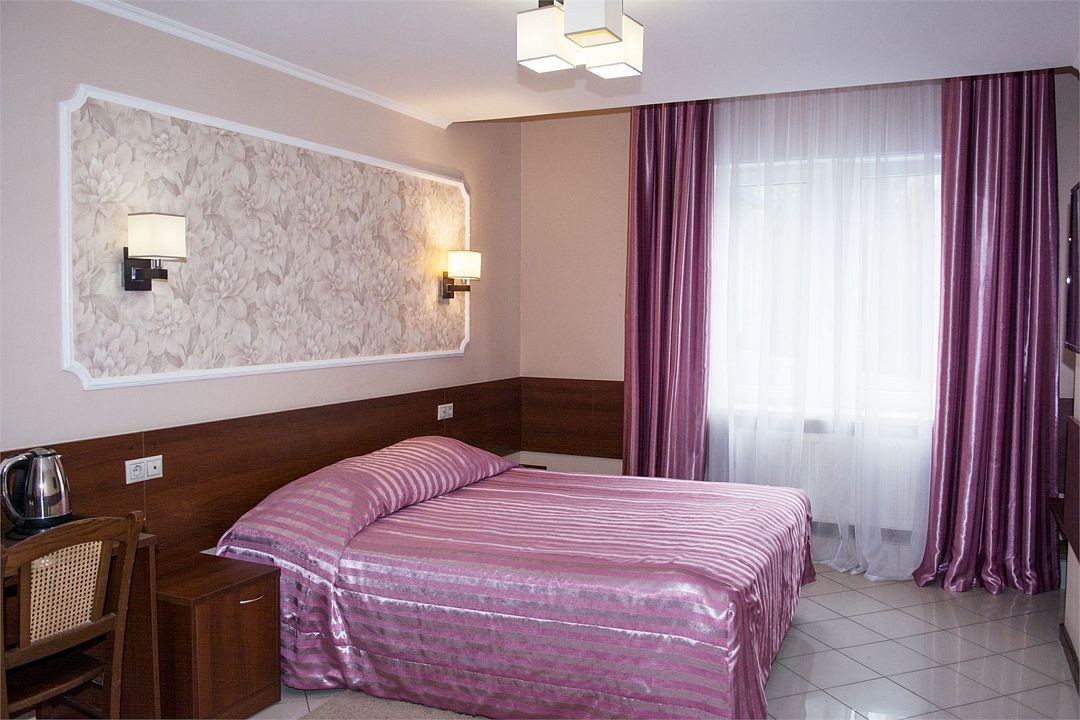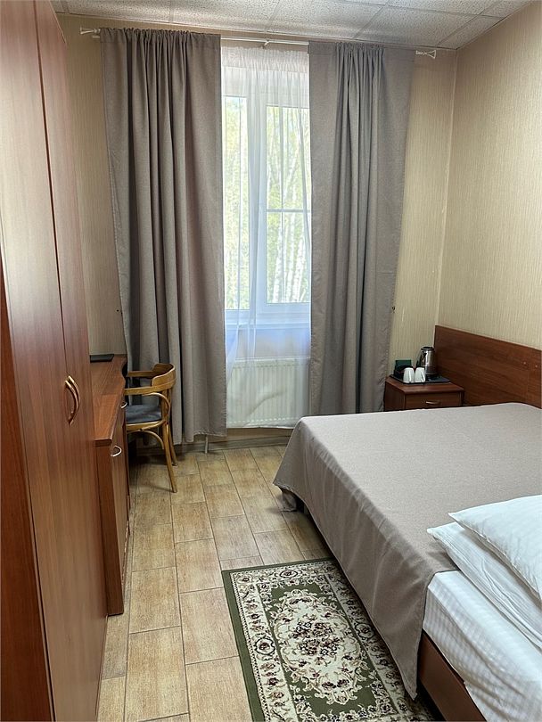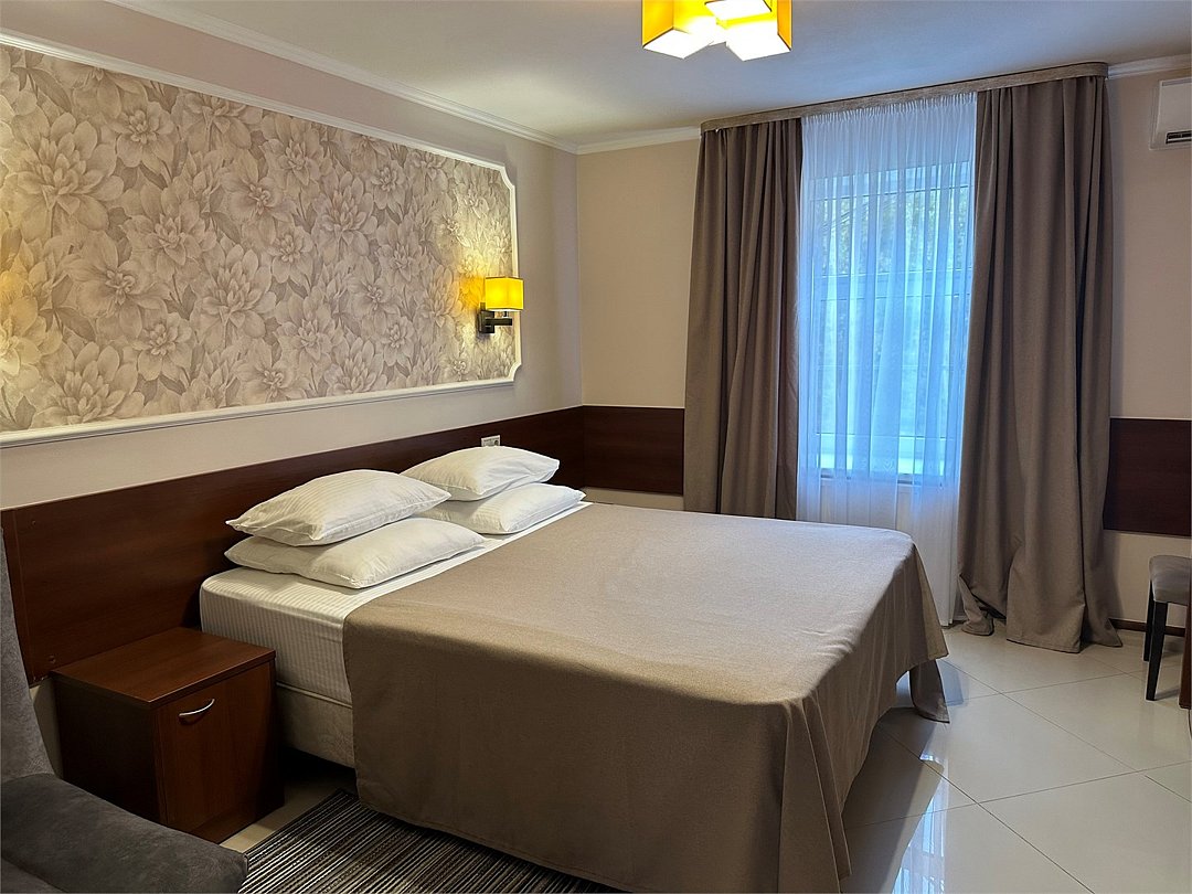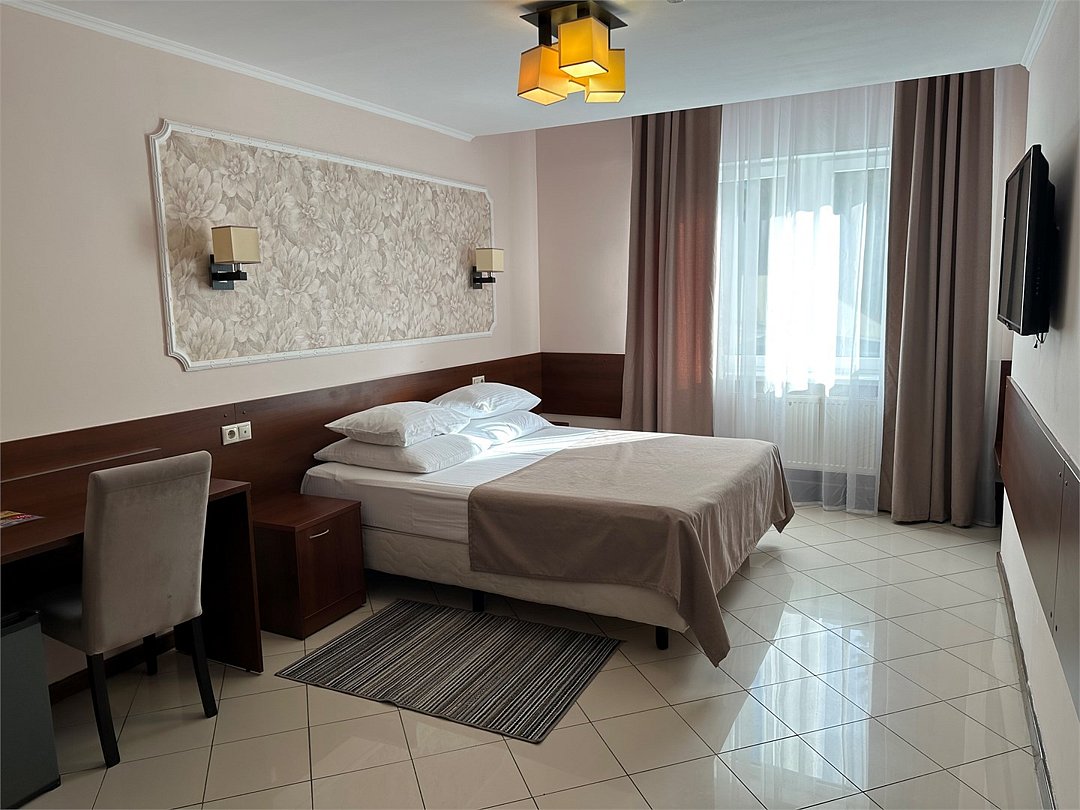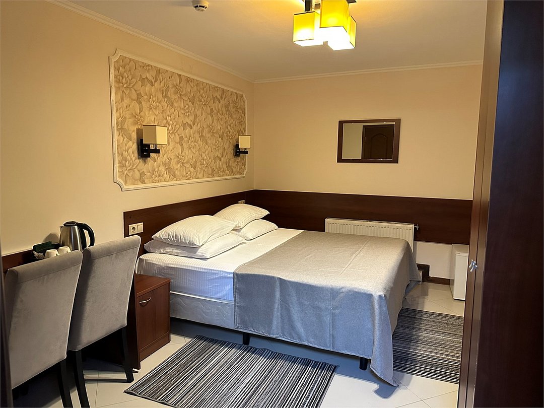 Вместимость: до 2 гостей Номер с одной двухспальной кроватью . В номере созданы все необходимые условия для комфортного проживания в приятной обстановке. Современная противопожарная система Шкаф Телефон Бесплатный Wi-Fi доступ в интернет Душ Комплект полотенец Косметические принадлежности Фен Холодильник Шторы для полного затемненияУслуги и удобства