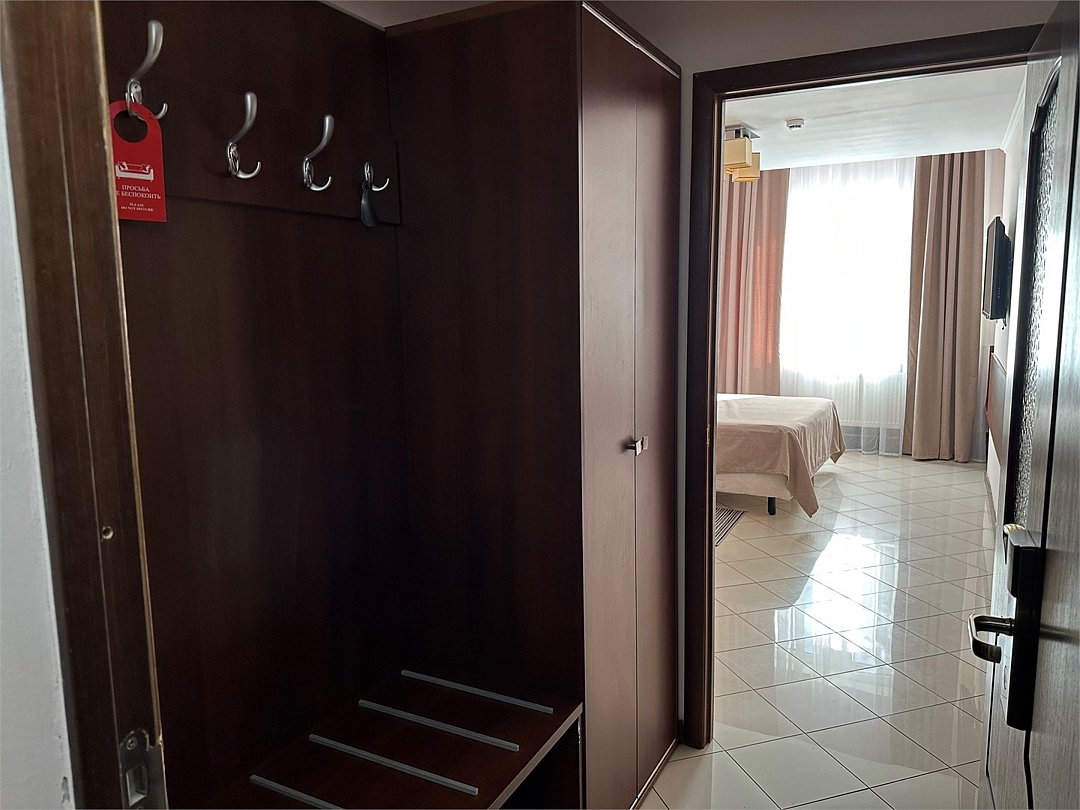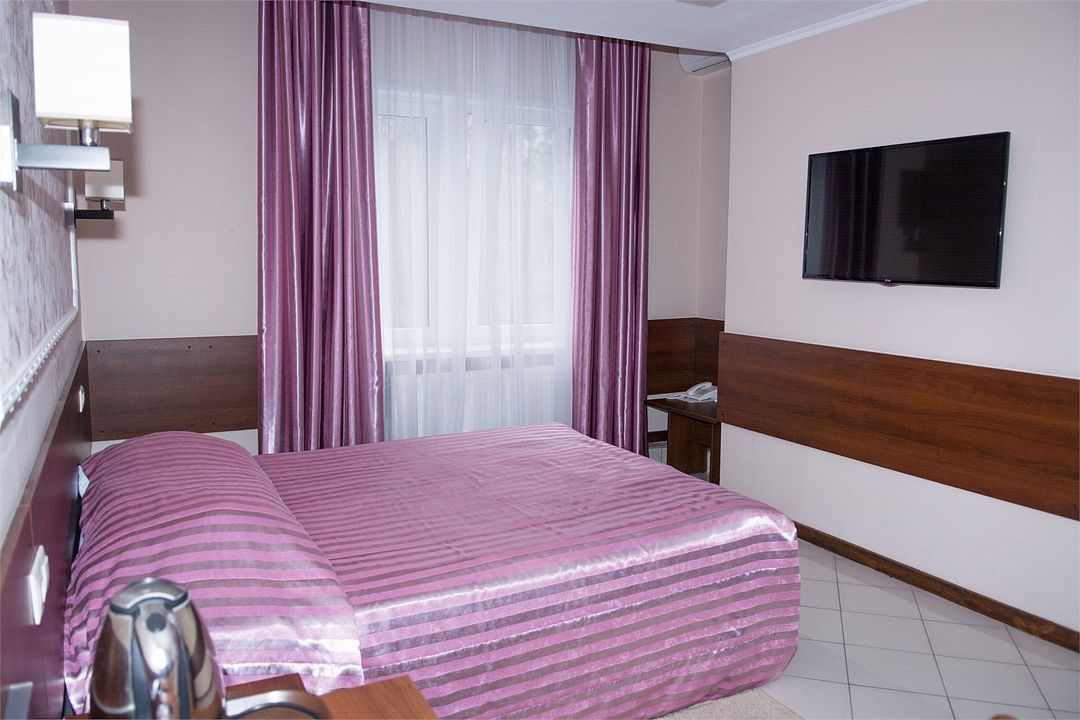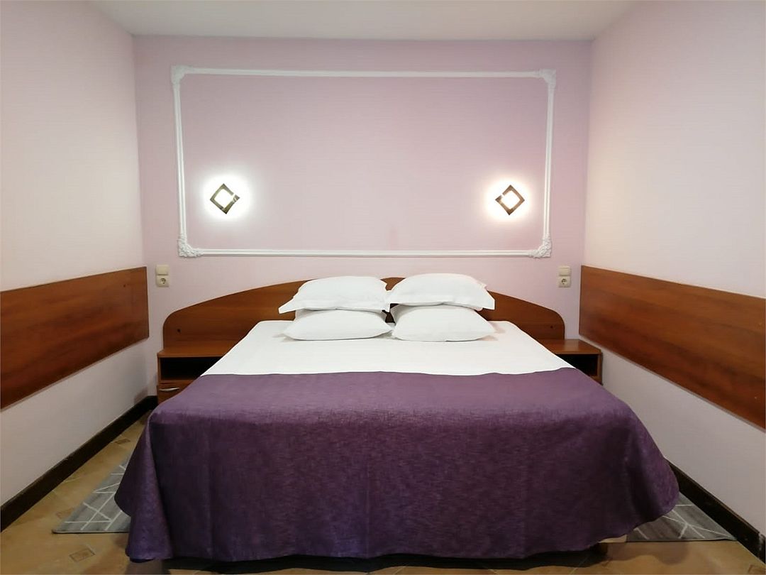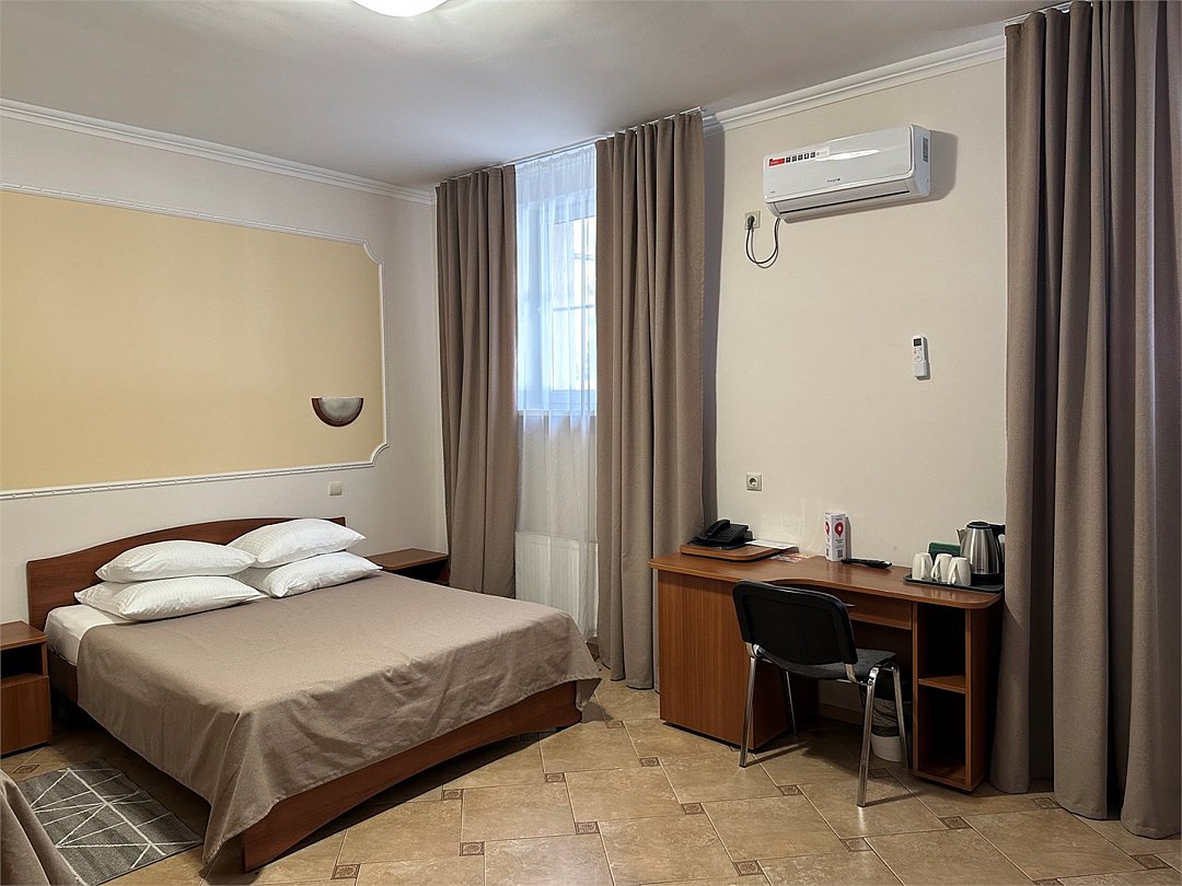 Вместимость: до 2 гостей Номер с одной двухспальной кроватью . В номере созданы все необходимые условия для комфортного проживания в приятной обстановке. Современная противопожарная система Шкаф Телефон Бесплатный Wi-Fi доступ в интернет Душ Комплект полотенец Косметические принадлежности Фен Холодильник Шторы для полного затемненияУслуги и удобства