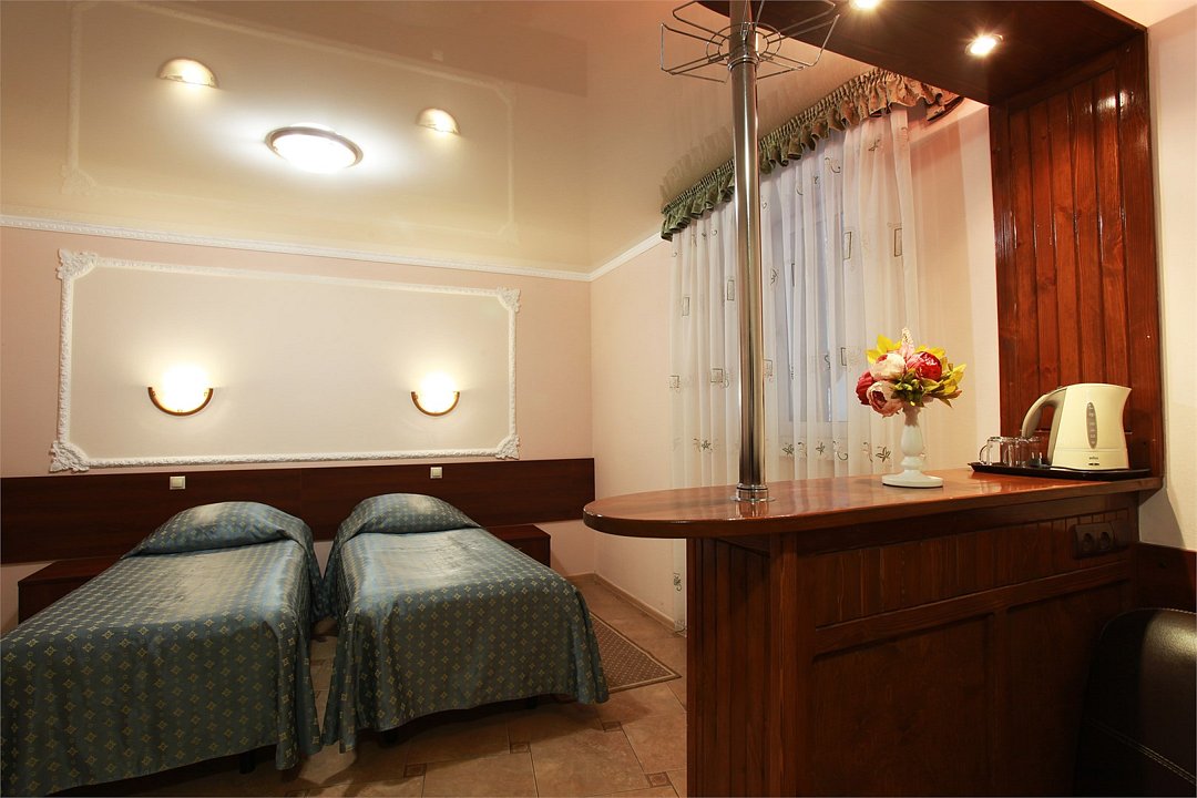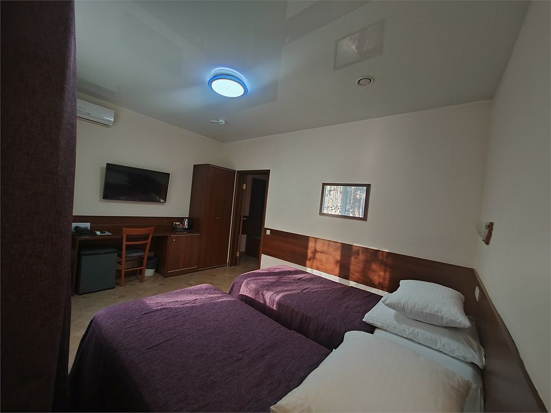 Номер с двумя кроватями со всеми необходимыми удобствами для комфортного проживания Современная противопожарная система Шкаф Телефон Бесплатный Wi-Fi доступ в интернет Душевая кабина Комплект полотенец Косметические принадлежности Фен Шторы для полного затемненияУслуги и удобства