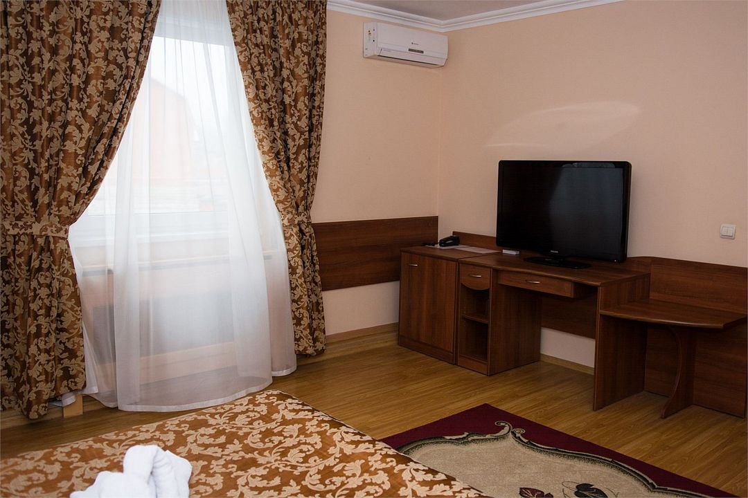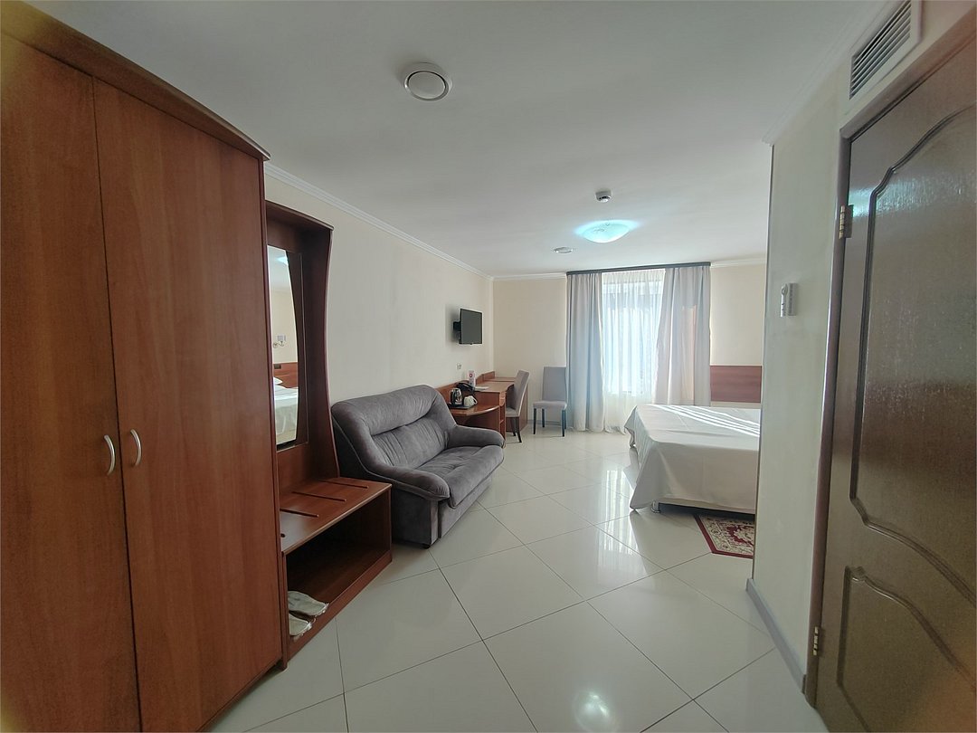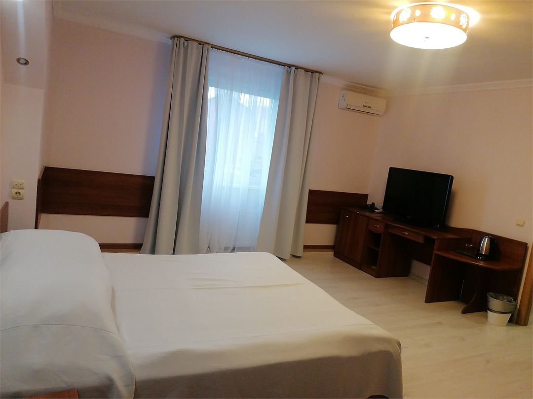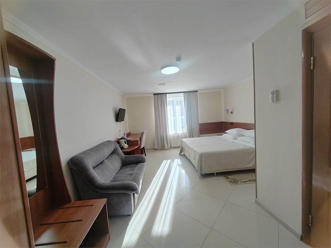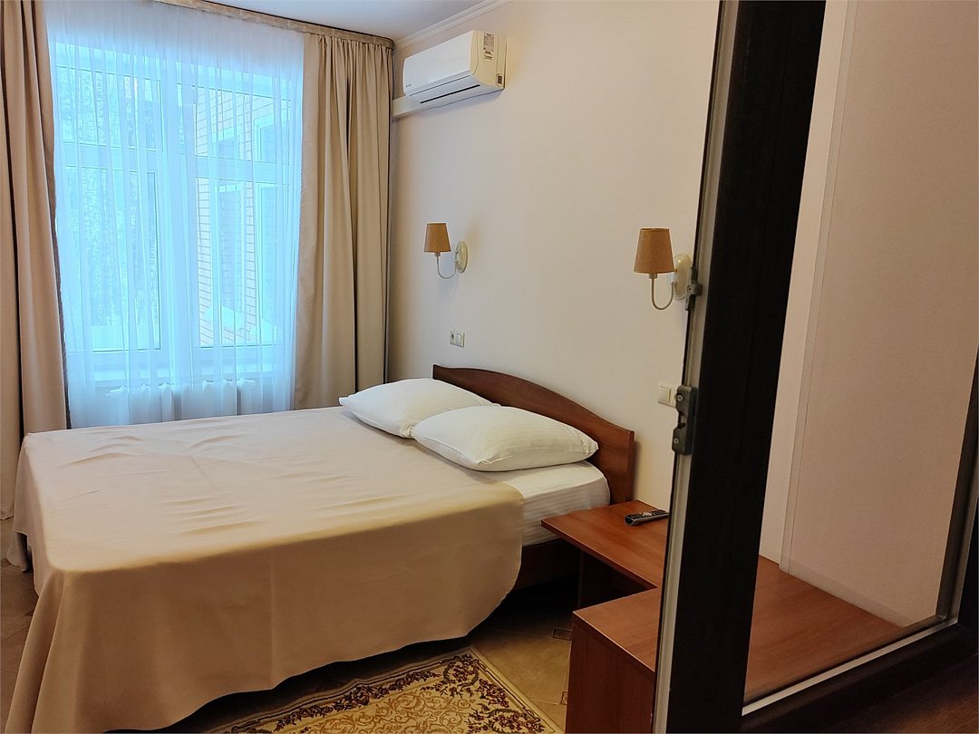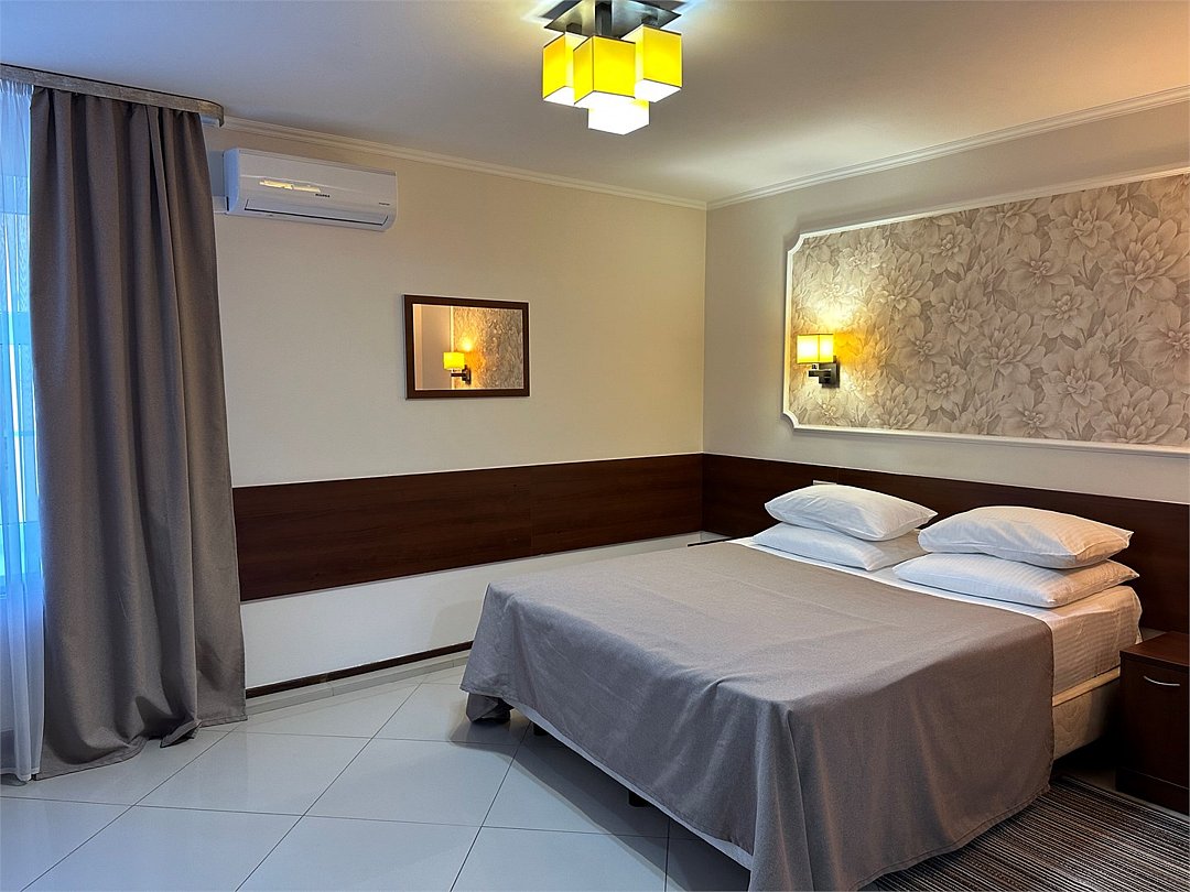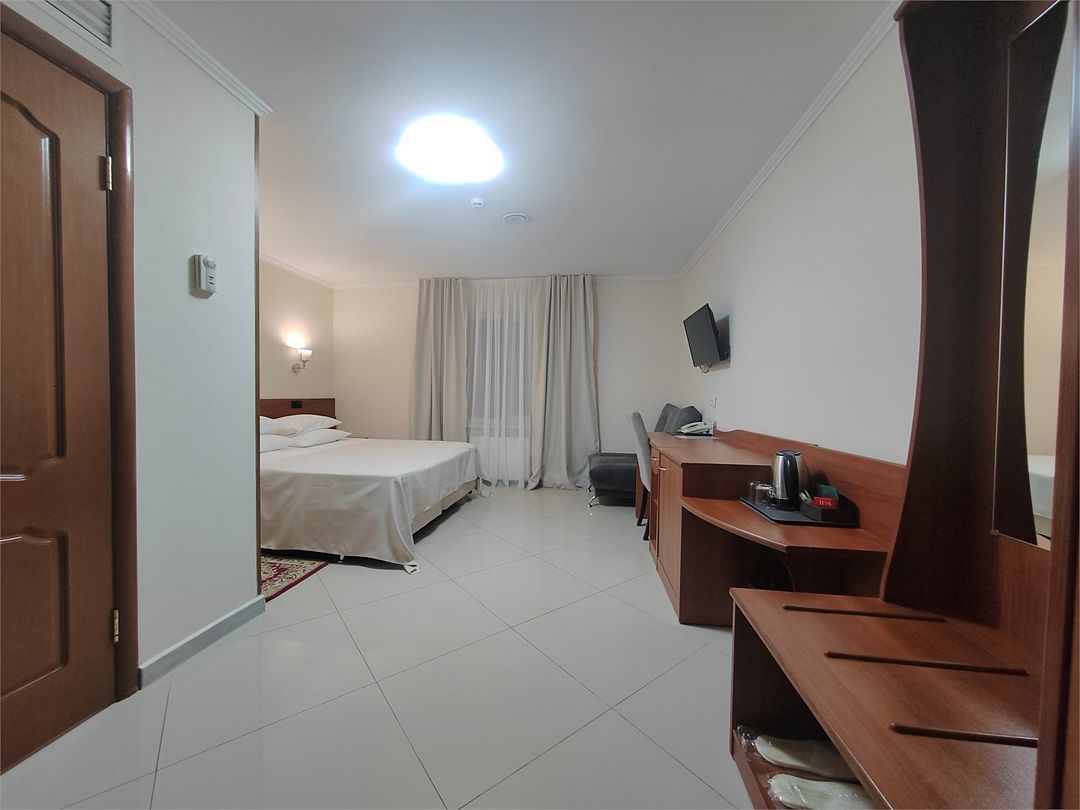 Вместимость: до 3 гостей (2 на основных местах + 1 на дополнительном месте) Просторный, однокомнатный или двух комнатный номер с двухспальной кроватью оформленный в современном стиле, со всеми удобствами для полноценного и комфортного отдыха. Система кондиционирования воздуха Современная противопожарная система Шкаф Телефон Бесплатный Wi-Fi доступ в интернет Ванная Комплект полотенец Косметические принадлежности Фен Холодильник Шторы для полного затемненияУслуги и удобства