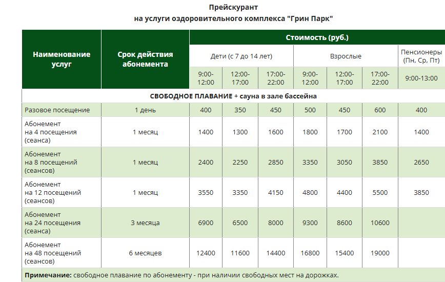 Памятка тем, кто планирует посетить бассейн Грин Парк впервые: