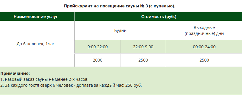 В комплексе имеются три отдельные сауны. Комфортный отдых в каждой из которых предполагает посещение до 6 человек.