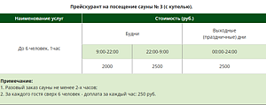 Отличительной особенностью одной сауны (Сауна №3) является наличие бассейна (2х3 метра) и бильярдного стола.