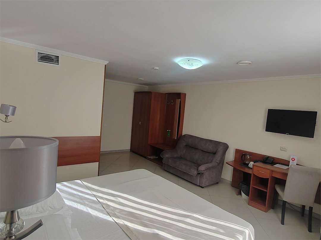 кабельное телевидение, Wi-Fi, кондиционер, светильник, фен, электронные замки, ванна, санузел, банные принадлежности, банные полотенца, косметические средства, диван, стулья, шкаф для одежды, вешалки, письменный стол, зеркало, чайник, унитаз, раковина, душ, кулер на этаже, вид во двор, стаканы, столовые приборы, стул, стол, туалетные средства, туалет, вид на парк, раскладной диван, внутренний телефон, телевизор с плоским экраном, мини-холодильник, гостиничная парфюмерия, можно с питомцамиВ гостиничном номере