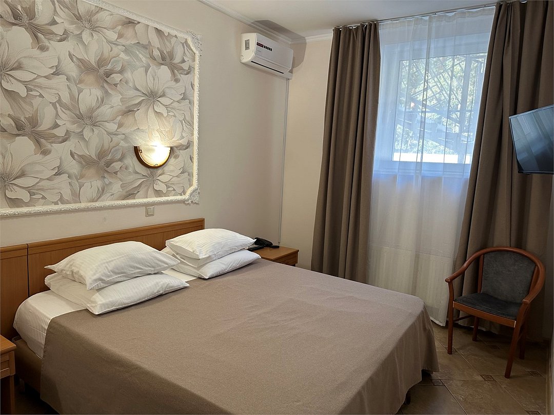 Вместимость: до 2 гостей Номер с одной двухспальной кроватью . В номере созданы все необходимые условия для комфортного проживания в приятной обстановке. Система кондиционирования воздуха Современная противопожарная система Шкаф Телефон Бесплатный Wi-Fi доступ в интернет Душ, или ванная Комплект полотенец Косметические принадлежности Фен Холодильник Шторы для полного затемненияУслуги и удобства