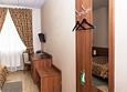 кабельное телевидение, Wi-Fi, фен, электронные замки, ванная комната, ванна, санузел, тапочки, односпальная кровать, шкаф для одежды, вешалки, письменный стол, багажная тумба, зеркало, обслуживание номеров, чайник, раковина, кулер на этаже, вид во двор, стаканы, столовые приборы, стул, тумба, туалетные средства, внутренний телефон, мини-холодильник, можно с питомцамиВ номере