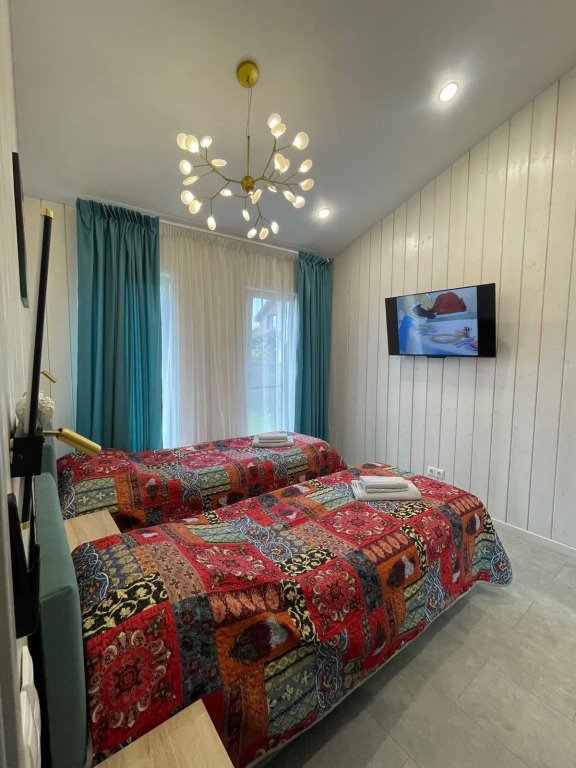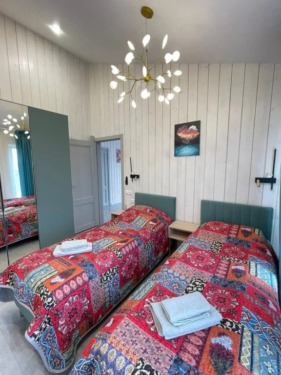 Четырёхместный коттедж с 3 комнатами с красивым видом из окна 2 отдельные кровати и двуспальная кровать