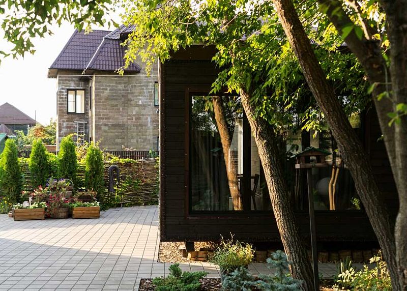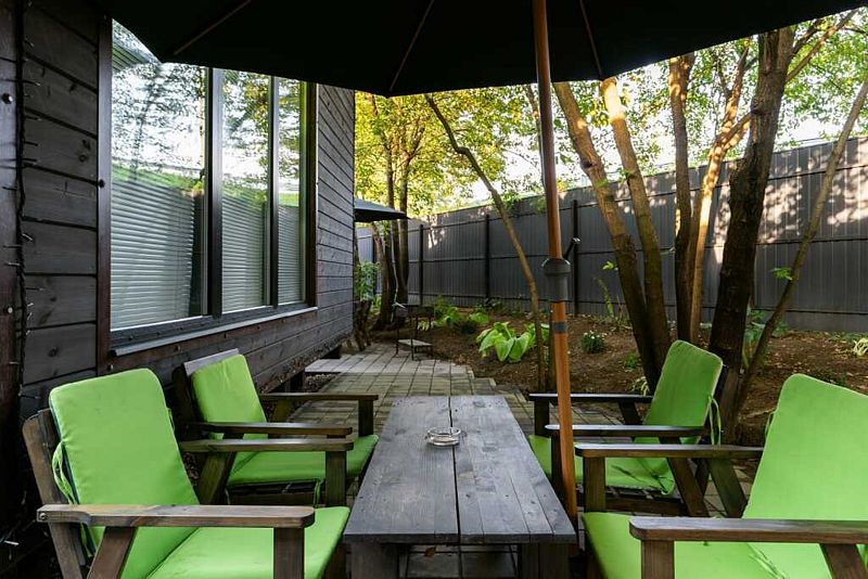 У каждого домика есть своё место на улице мангалом.