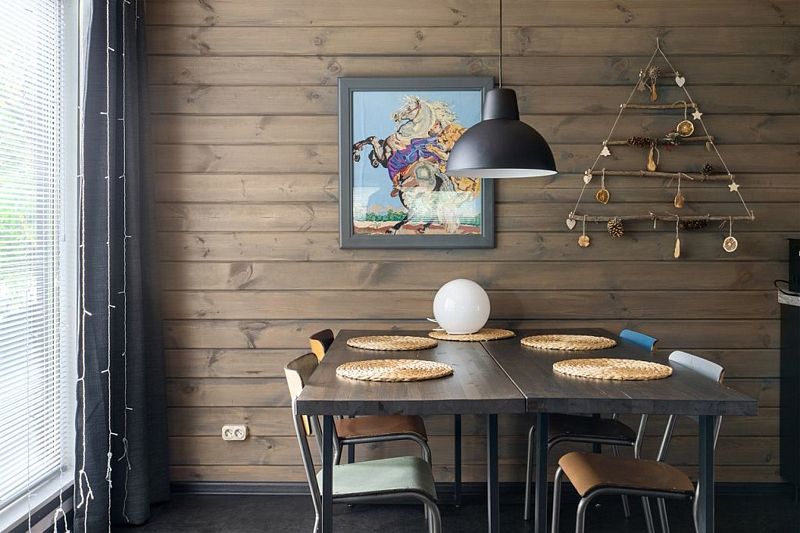 Все было украшено по новогоднему и стояла ёлка.