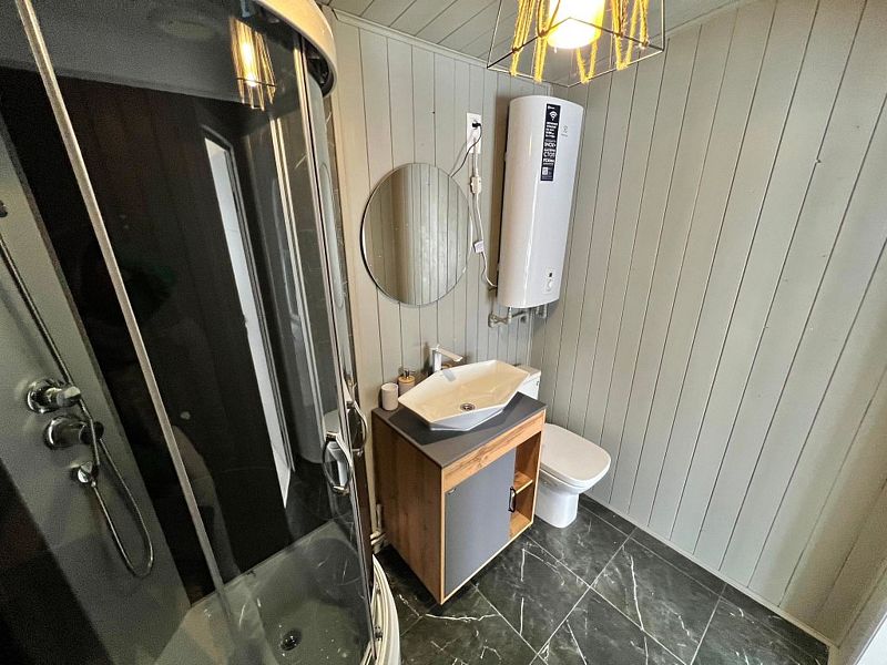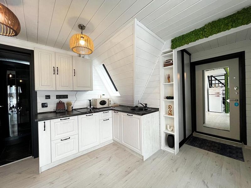 Два современных домика оснащены комфортабельной мебелью и техникой для насыщенного загородного отдыха. В распоряжении гостей лаундж зоны, терраса с удобными креслами, уютные спальные места и ванные комнаты с душевыми.