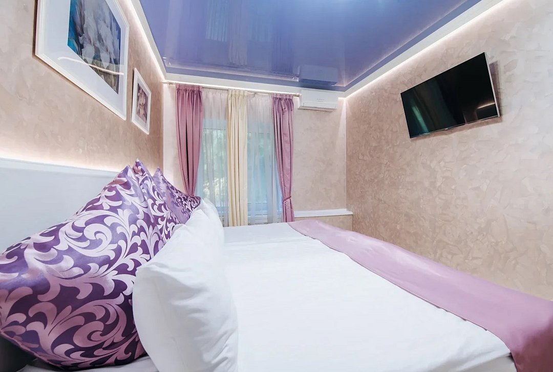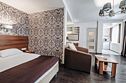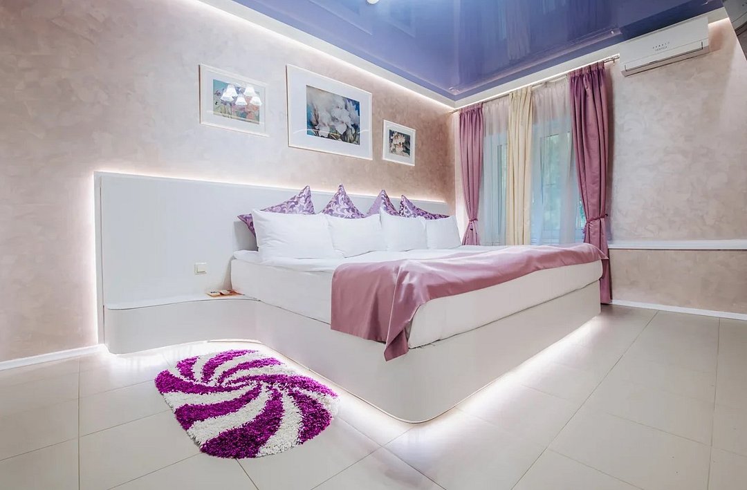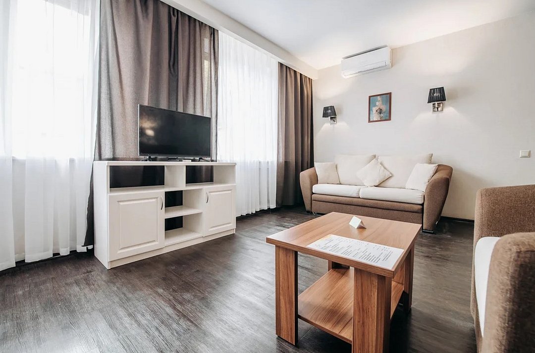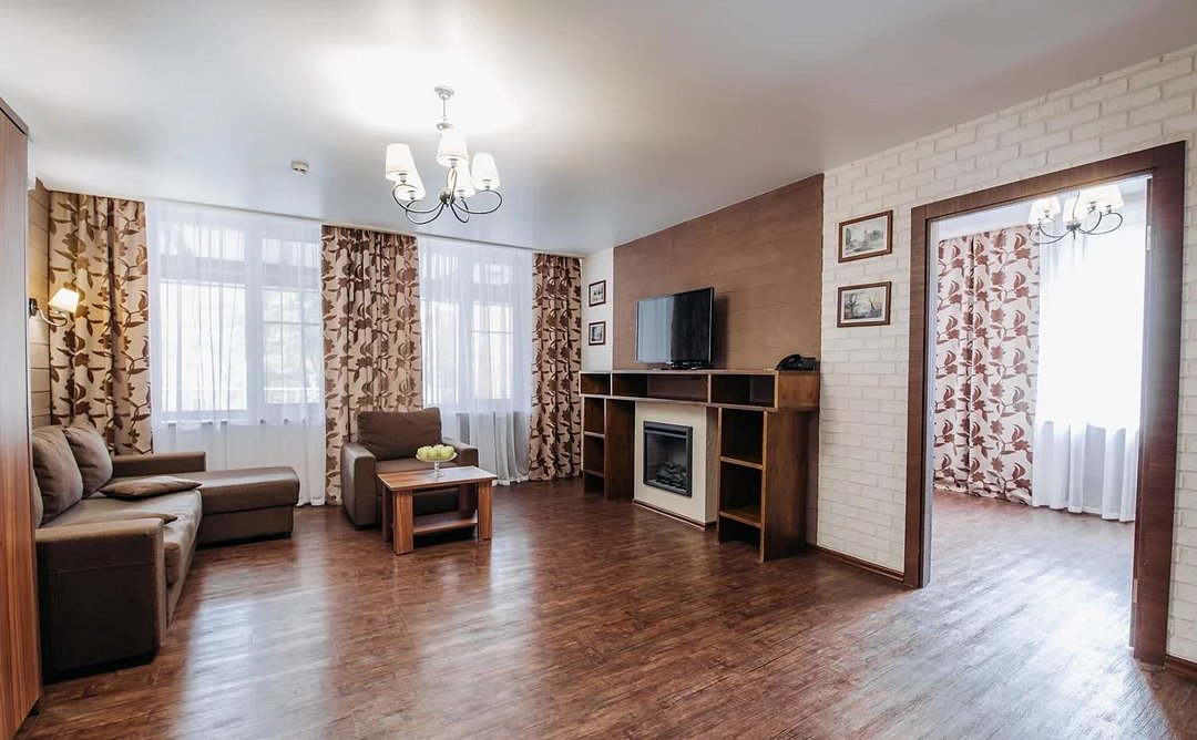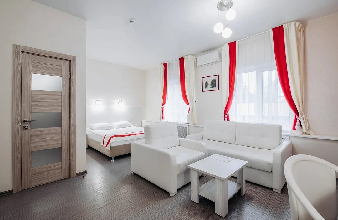 Люкс 1 комнатный площадью 26-29 кв.м. для комфортного размещения двух человек. В номере одна двуспальная кровать, небольшой диван и кресло. Возможна установка детской кроватки. Дети до 5 лет проживают бесплатно без предоставления дополнительных мест, не превышая максимально допустимое количество человек в номере.Услуги и удобства