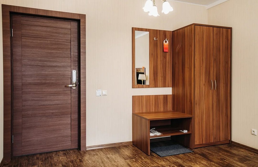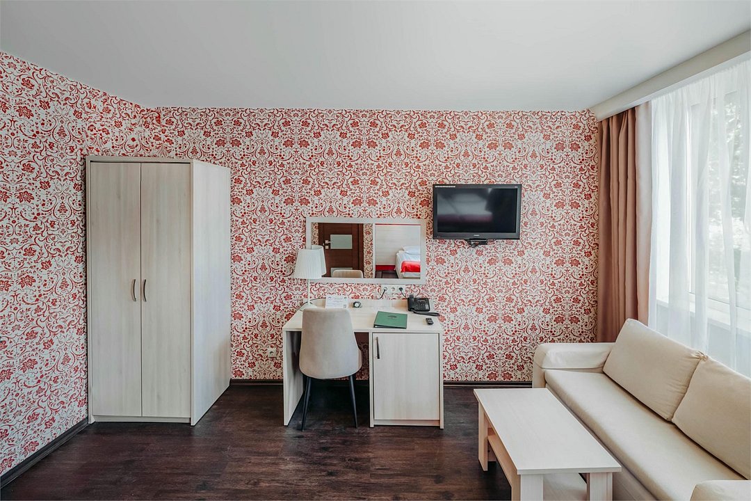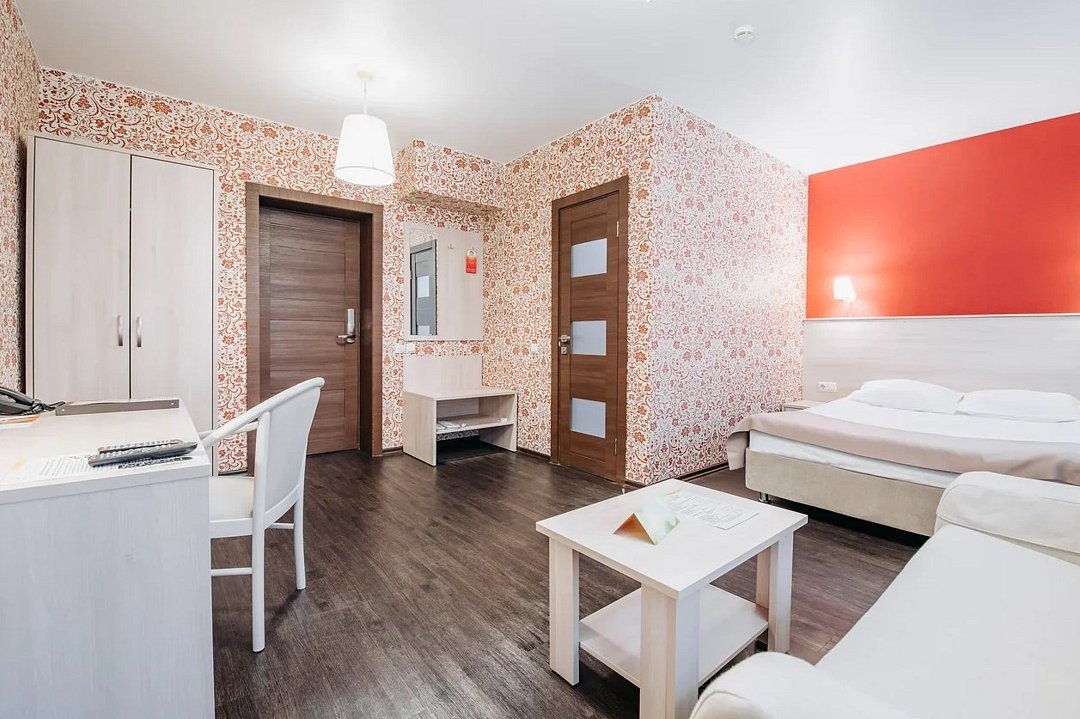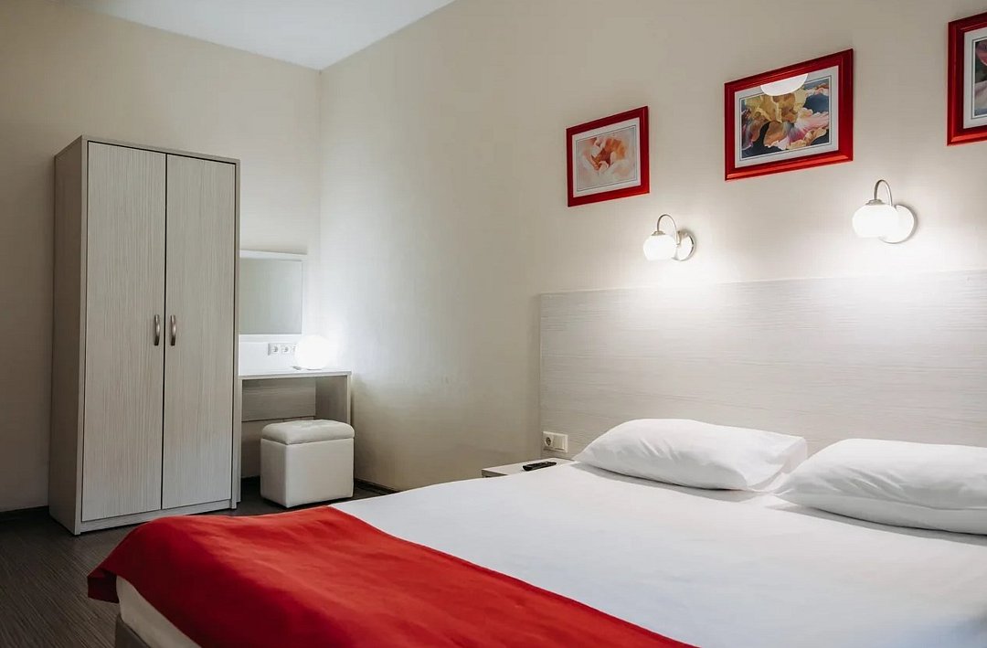 Улучшенный Стандарт с Креслом площадью 23-26 кв.м. для комфортного размещения двух человек. В номере расположена одна двуспальная кровать и односпальное кресло. Дети до 5 лет проживают бесплатно без предоставления дополнительных мест, не превышая максимально допустимое количество человек в номере.Услуги и удобства