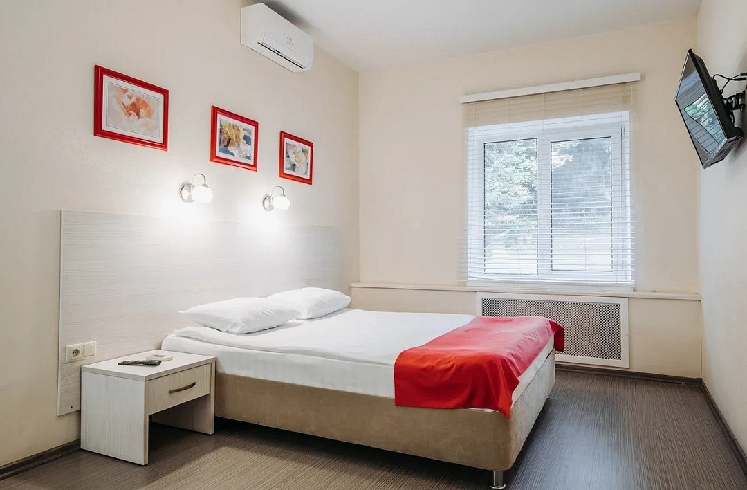 Стандартный однокомнатный номер площадью 22 кв.м. для комфортного размещения двух человек. В номере две односпальные кровати и небольшой диван. Номера расположены в трехэтажном уединенном корпусе. Дети до 5 лет проживают бесплатно без предоставления дополнительных мест, не превышая максимально допустимое количество человек в номере.Услуги и удобства