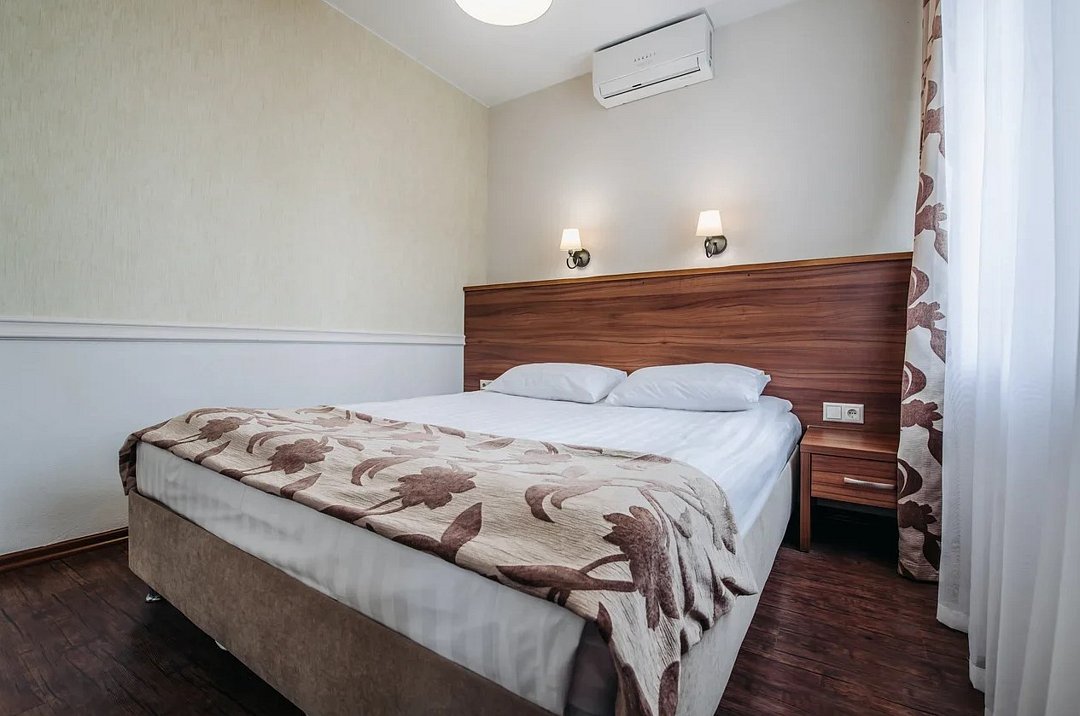Стандартный однокомнатный номер площадью 19 кв.м. для комфортного размещения только двух человек. В номере две односпальные кровати. Номера расположены в трехэтажном уединенном корпусе. Дети до 5 лет проживают бесплатно без предоставления дополнительных мест, не превышая максимально допустимое количество человек в номере.Услуги и удобства