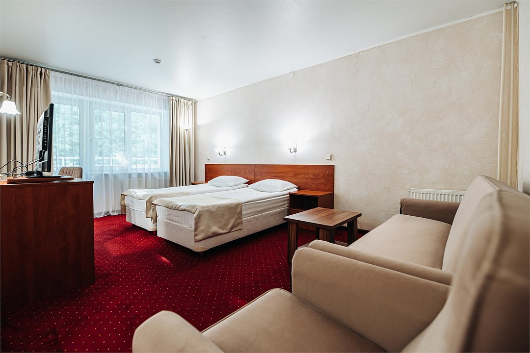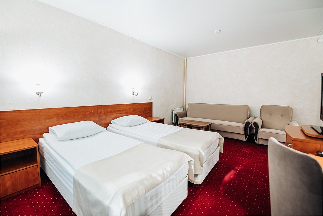 Улучшенный стандартный номер для комфортного проживания двоих человек. В номере расположено 2 односпальные кровати, диван. Дети до 5 лет проживают бесплатно без предоставления дополнительных мест, не превышая максимально допустимое количество человек в номере.Услуги и удобства