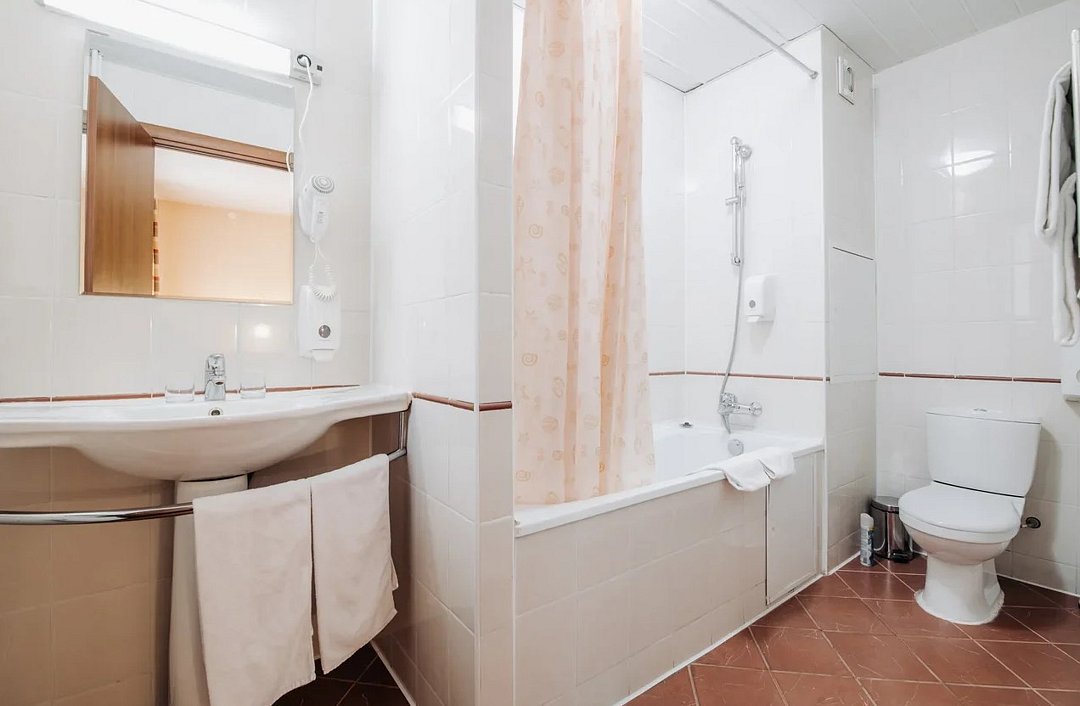 телевизор, кабельное телевидение, Wi-Fi, светильник, настольные лампы, фен, ванная комната, ванна, банные принадлежности, банные полотенца, балкон, две односпальные кровати, тумбы, стулья, шкаф для одежды, журнальный столик, письменный стол, зеркало, ковер, обслуживание номеров, информационная карта, меню, унитаз, раскладной диван, москитная сетка, номер для некурящих, общественный бассейн, неограниченное посещение СПА, холодильный шкафВ гостиничном номере