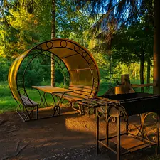 Арендуйте уютное пространство среди природы с комфортной мебелью и всем необходимым для пикника. От 2 до 15 человек. Ваш спокойный отдых без хлопот!»