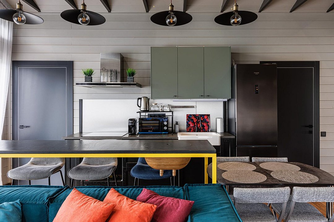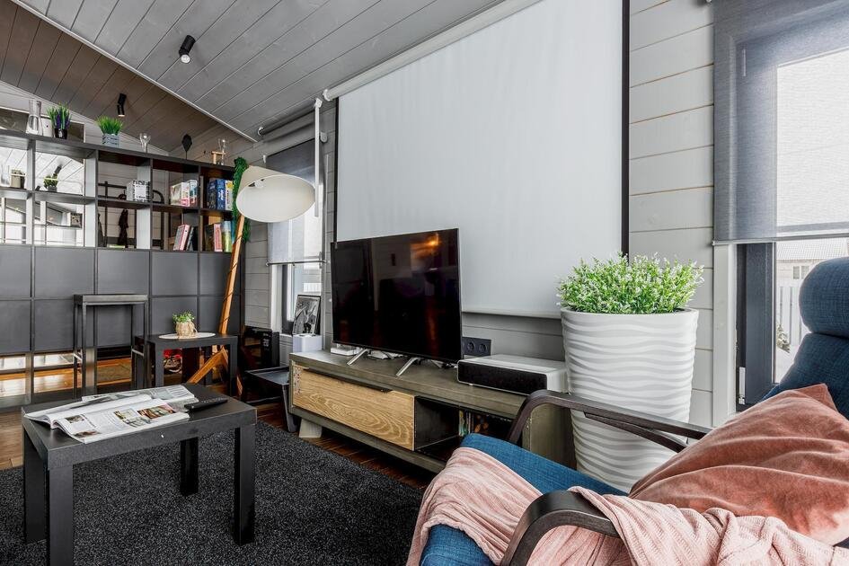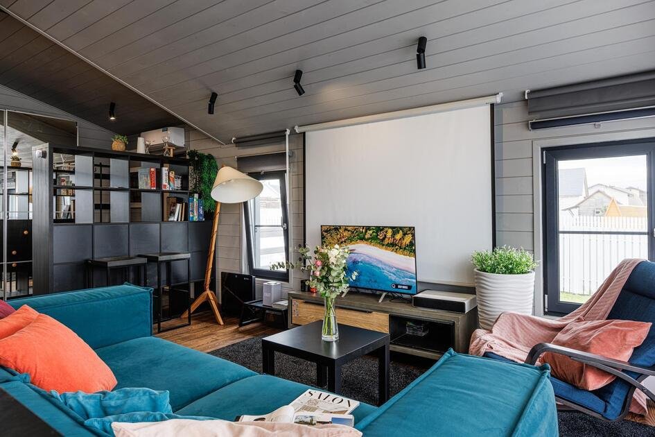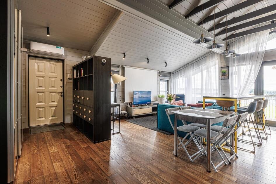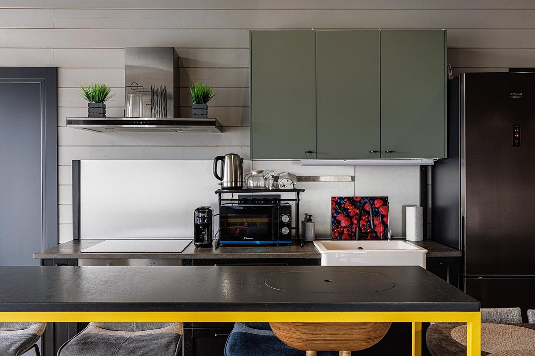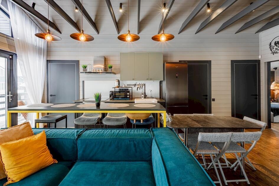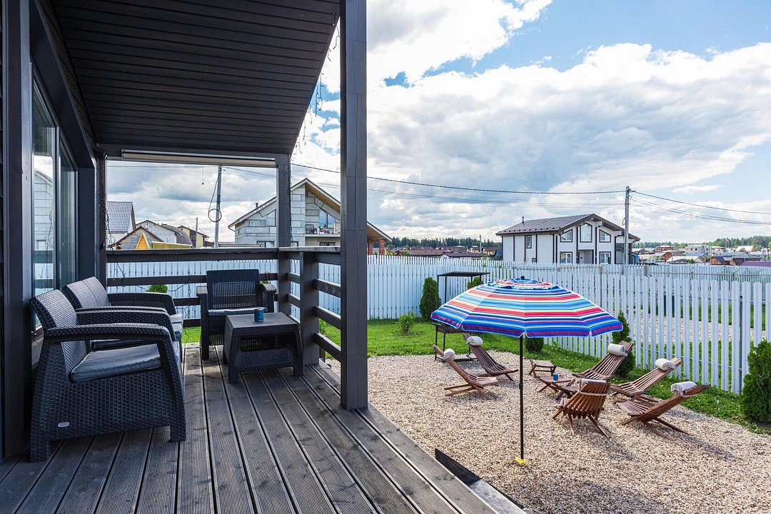 Современный барнхаус с панорамными окнами, большой террасой и обширным участком в посёлке у Истринского водохранилища. Внутри дома расположены две спальни с кроватями размером 160×200, детская комната с полутораспальным диваном, просторная кухня-гостиная с раскладным диваном, два санузла и уютная терраса с мебелью.