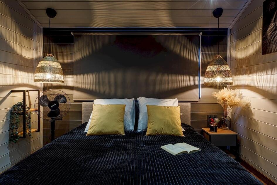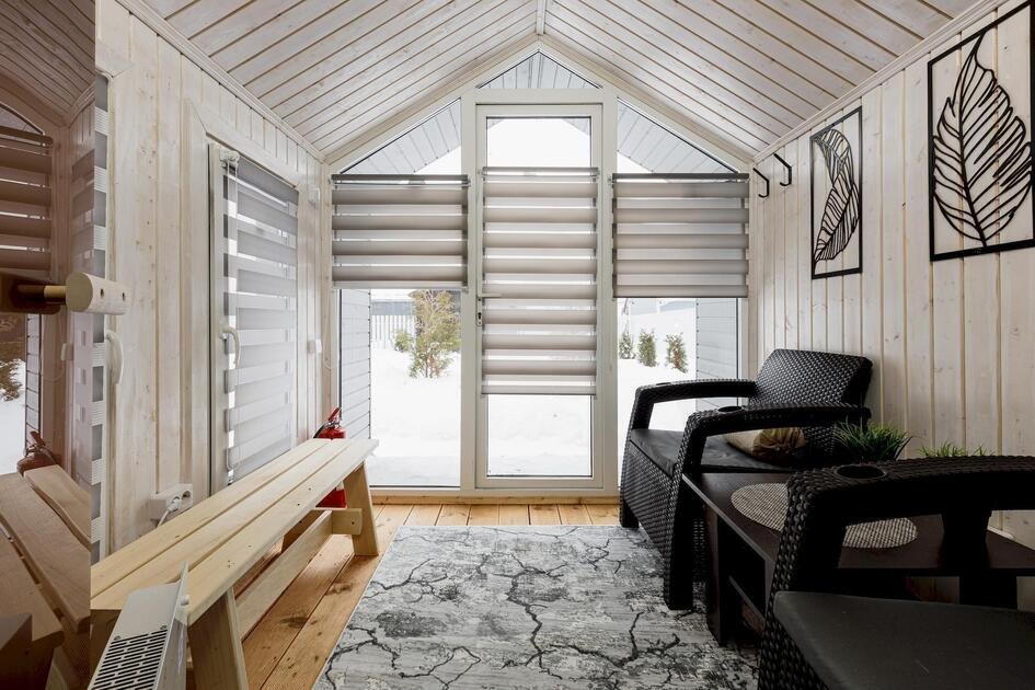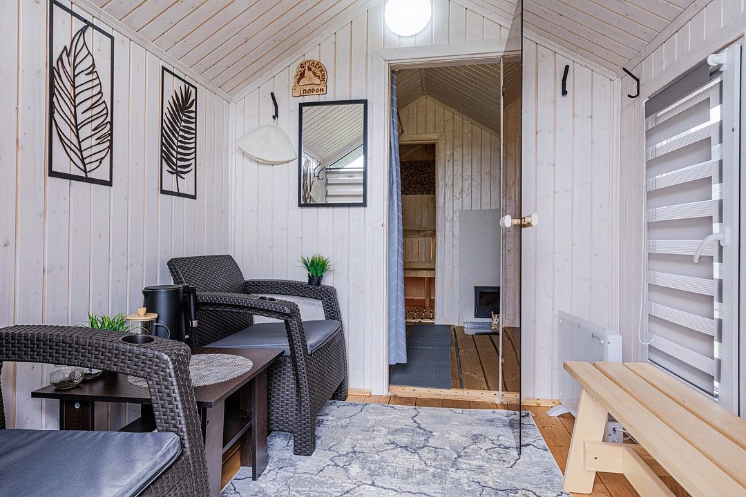Дровяная баня с душем и зоной отдыха — доплата по согласованию. Заселение — полностью самостоятельное, через электронный замок/сейф. Все заранее подготовлено, без встреч и ожиданий.