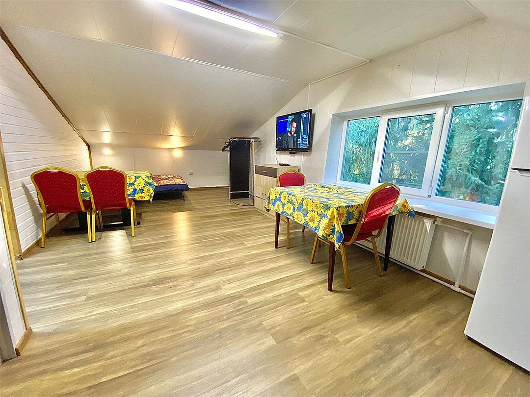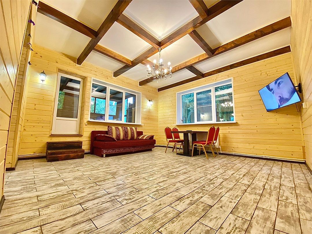 Апартаменты имеют просторную гостиную с телевизором и диваном. 2 спальни с большими двухспальными кроватями. Веранду с террасой. Телевизор, холодильник, доступ к сети интернет. Можно с домашними питомцами (устанавливается дополнительная плата) Разнообразить досуг можно посещением русской баньки, бассейна и сауны. На территории имеется две мангальные зоны. Отдыхающие могут приготовить на кухне, оснащенной всем необходимым. Наслаждайтесь приятной атмосферой.