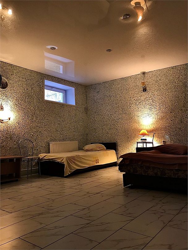 Находится на 1 этаже в доме. Разогревается до 100 градусов. Максимальная вместимость до 10 человек. Есть зона отдыха, для чаепития. Раздельный санузел, полотенца и спальня.