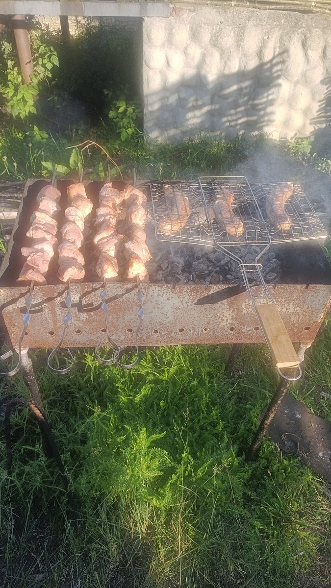 Прихожая, душ, туалет, кухня с холодильником, газовой плитой и набором посуды, обеденный стол, диван, телевизор, спальня с двуспальной, большой ТВ, Wi-Fi, территория с мангалом