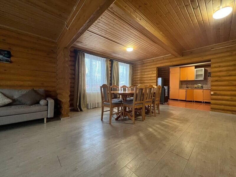 На первом этаже расположилась просторная гостиная для приема гостей, большой обеденный стол на восемь человек, а на кухне есть все необходимое для приготовления пищи. Второй этаж — это спальная зона с тремя отдельными спальнями и две ванных комнаты.