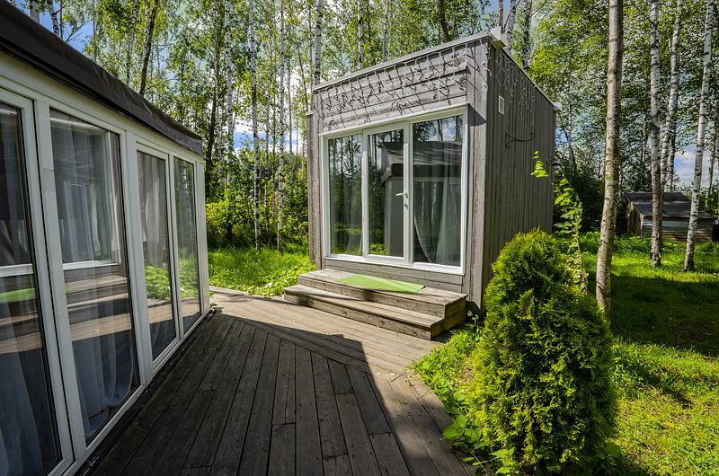 Баня с панорамным стеклом на берегу Икшинского водохранилища. Уединенное лесное место для спокойного отдыха с семьей или друзьями. Дровяная печь — закрытая каменка с пароиспарителем. Любой режим — русская баня, финская сауна, хаммам.