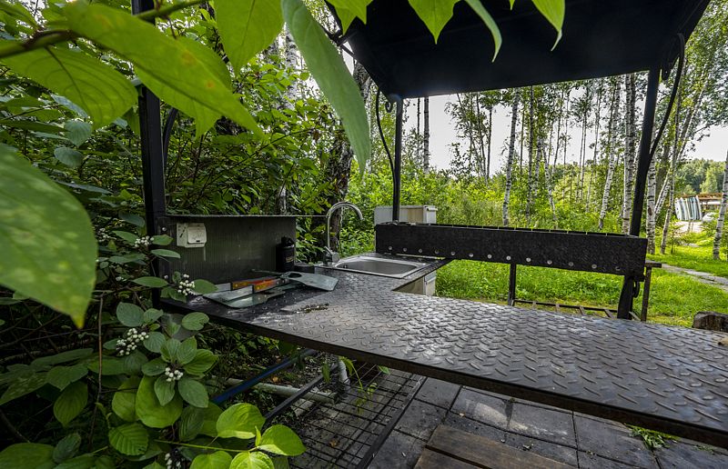 На площадке вас ждёт: освещение, мангал, казан, холодильник, плита, микроволновка, печь,