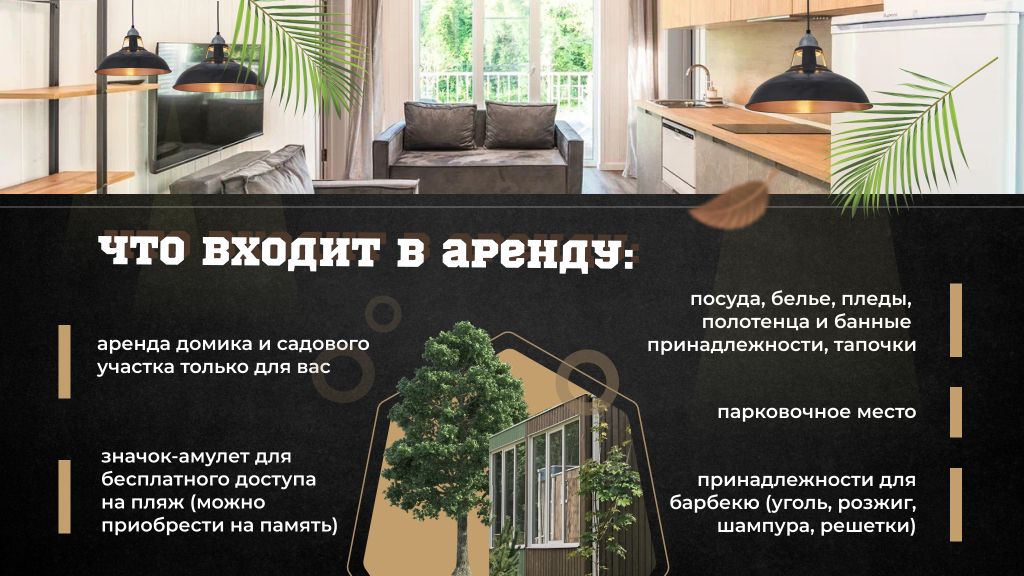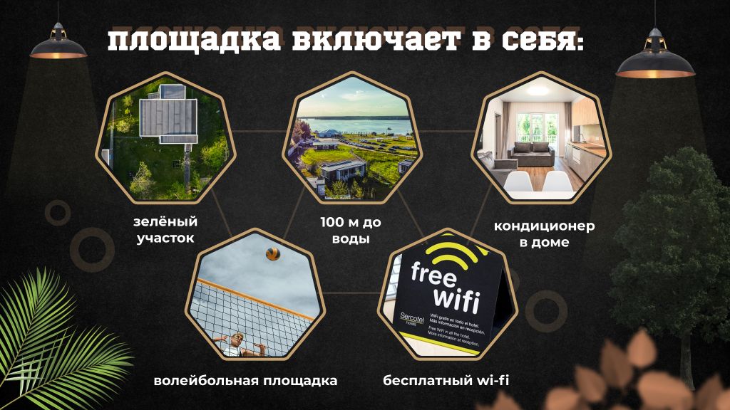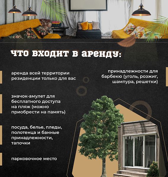 Здесь вы сможете отметить свой день рождения, свадьбу, корпоратив, детский праздник или караоке вечеринку! А если вам по душе спокойный отдых, то есть возможность сходить на рыбалку, устроить посиделки у костра, поиграть в настольные игры, приготовить что-нибудь на свежем воздухе, покататься на велосипеде и многое другое.