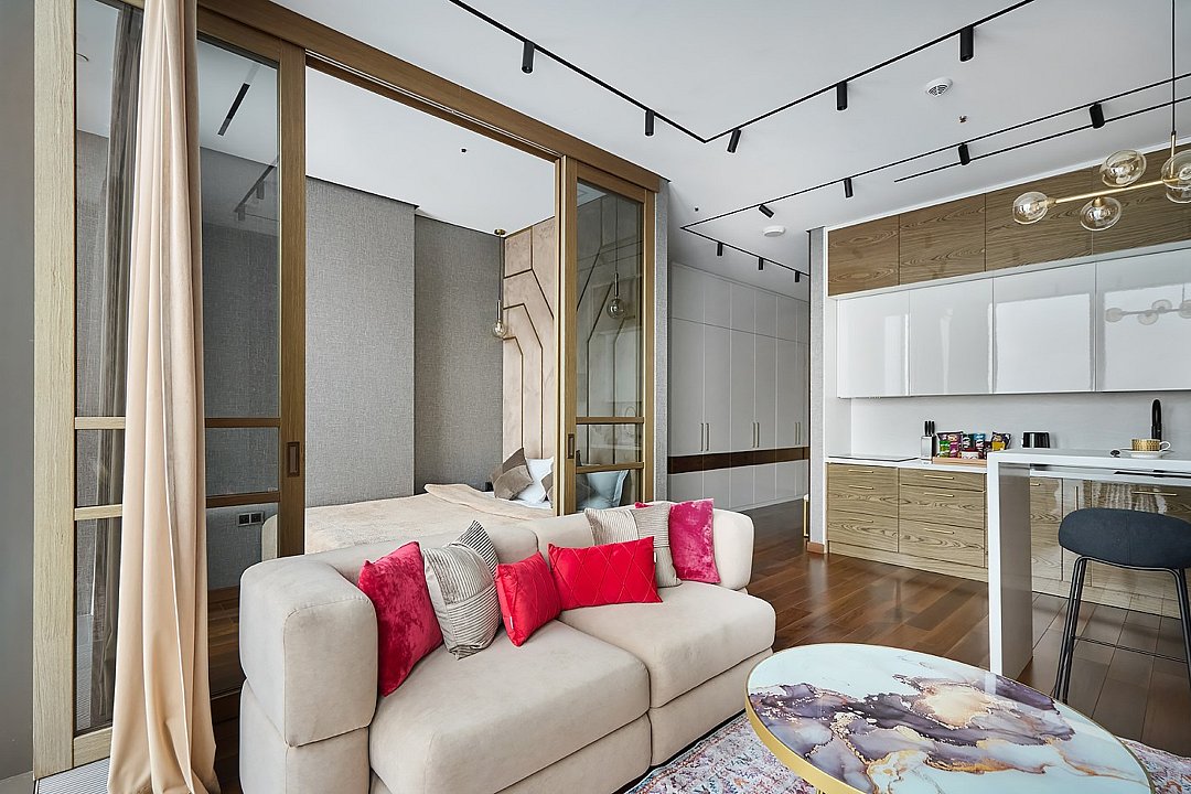 Добро пожаловать в “Ривьера” — изысканный номер на 25 этаже башни Neva в Москва-Сити, где современный хай-тек дизайн сочетается с комфортом и уютом. Этот просторный апартамент площадью 65 м² создан для того, чтобы ваши будни и праздники стали по-настоящему незабываемыми. Возможности номера: • Уютная спальня с двуспальной кроватью премиум-класса для глубокого и спокойного сна. • Просторная гостиная зона с диваном и большим телевизором для вашего досуга. • Полностью оборудованная кухня: посудомоечная машина, плита, холодильник и полный комплект посуды. • Современная ванная комната оборудована всем необходимым: душ, ванна, полотенца, халаты, туалетные принадлежности премиум-класса. • Стиральная машина и утюг, чтобы вы всегда чувствовали себя как дома. Особенности: “Rivera” идеально подходит для: • Организации праздников: от уютных дней рождения до романтических вечеров. • Проведения небольших мероприятий или встреч с друзьями. • Кратковременного или длительного проживания в самом сердце динамичного мегаполиса.Услуги и удобства