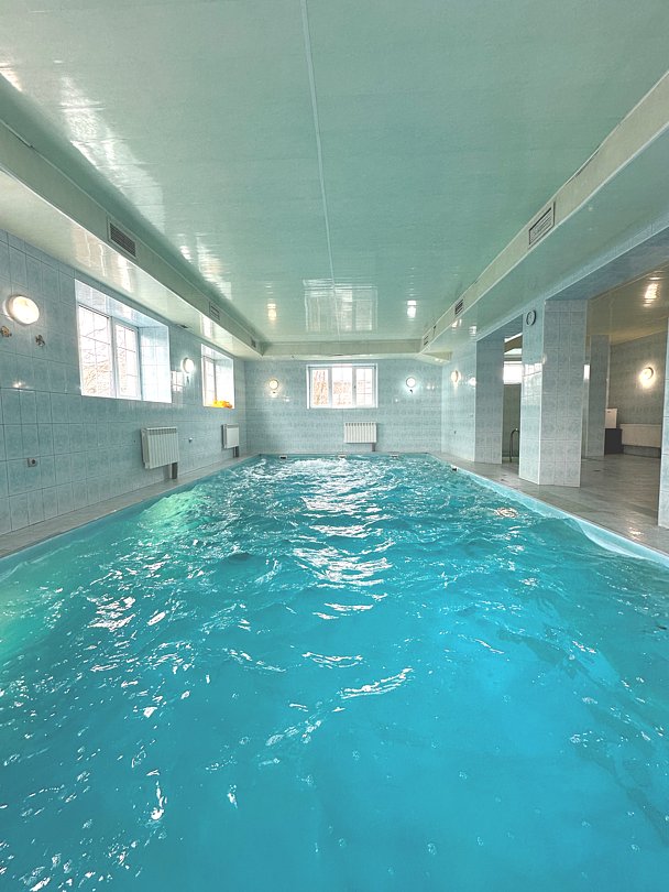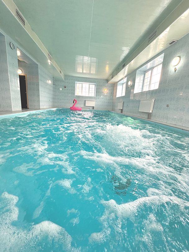 На первом этаже коттеджа находится просторный и глубокий плавательный бассейн с системой подогрева воды. Размеры бассейна позволяют с комфортом плавать и заниматься водными видами спорта, а также создают идеальные условия для отдыха и развлечений.