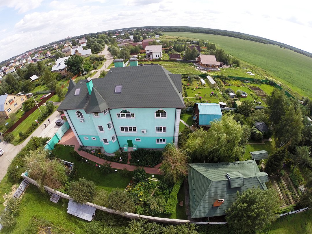 Внутри дома могут разместиться до сорока человек. На первом этаже вас ждёт тёплый бассейн размером 10х5х3 метра, финская сауна, турецкий хамам и светомузыка для аквадискотеки. На втором этаже расположен банкетный зал на тридцать человек, отдельная комната с телевизором и аудиоаппаратурой, караоке, светомузыкой и полностью оборудованной кухней. Здесь же находится ванна СПА для релаксации и спальня.