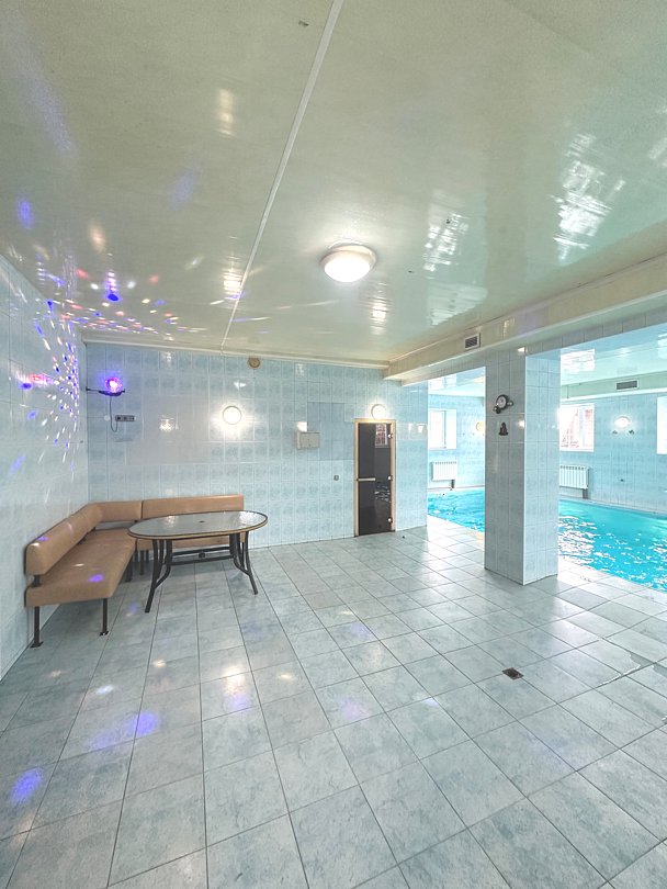 Тип бассейна: крытый бассейнВода в бассейне: подогреваемый бассейнТемпература в бассейне: 30 °CРазмеры: 10 x 5 мПлощадь: 50 м²Глубина: 300 смПериод работы: круглогодичноНа первом этаже коттеджа находится просторный и глубокий плавательный бассейн с системой подогрева воды. Размеры бассейна позволяют с комфортом плавать и заниматься водными видами спорта, а также создают идеальные условия для отдыха и развлечений.