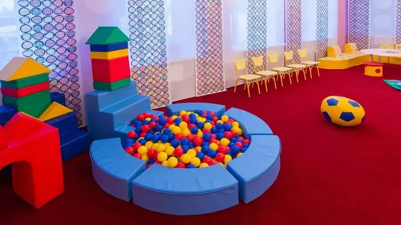Специальная детская мебель, мягкий игровой комплекс, домик с тоннелем, сухой бассейн с шариками, игрушки, настольные игры и много всего интересного. Услуга включена в стоимость.