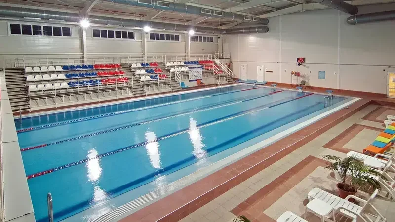 Тип бассейна: крытый бассейнРядом с бассейном: шезлонгиТемпература в бассейне: 26 °CРазмеры: 11 x 25 мПлощадь: 275 м²Время работы: от 09:00 до 21:00Глубина (диапазон): от 150 до 170 смДля обеспечения чистоты и безопасности в бассейне вода проходит тщательную трехступенчатую систему очистки, а также дополнительно обеззараживается с помощью ультрафиолетовых лучей. Это гарантирует высокое качество воды и гигиеничность.