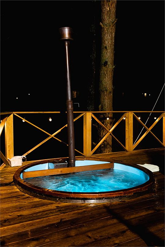 На открытой террасе расположена японская бочка фурако (в стоимость не включена). Погреться в ней можно при любой погоде под открытым небом.