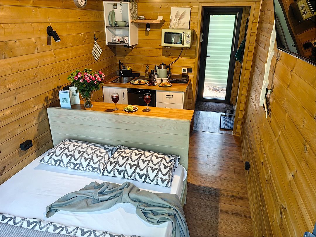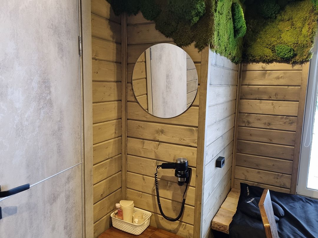 В доме: тёплый пол, большая двуспальная кровать, душ и туалет. А самое главное — собственная дровяная сауна.
