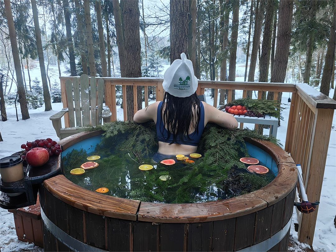 Рядом с домом расположен банный чан (в стоимость не включён). Погреться в нём можно под открытым небом при любой погоде.