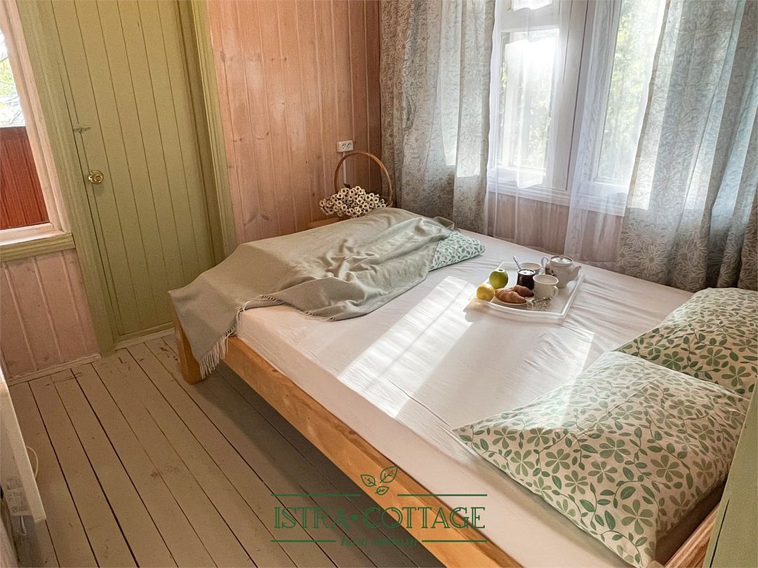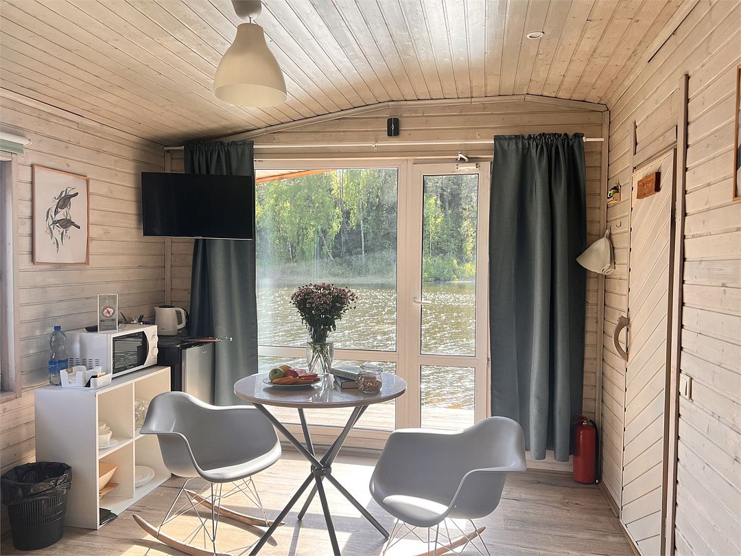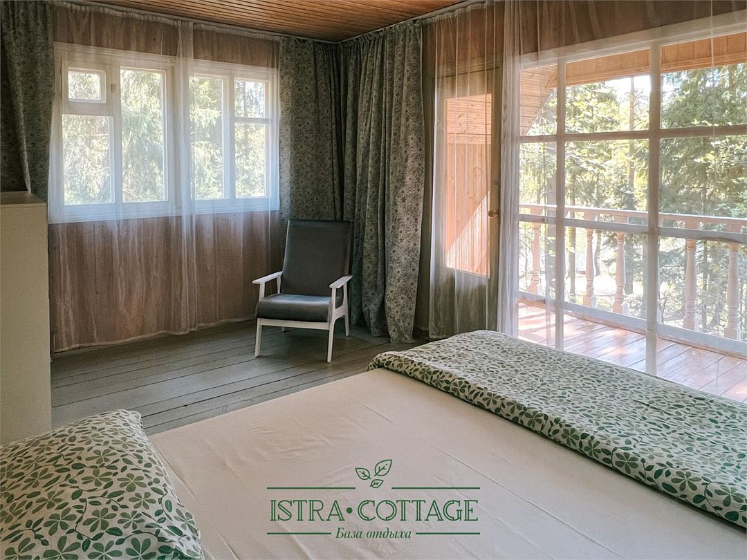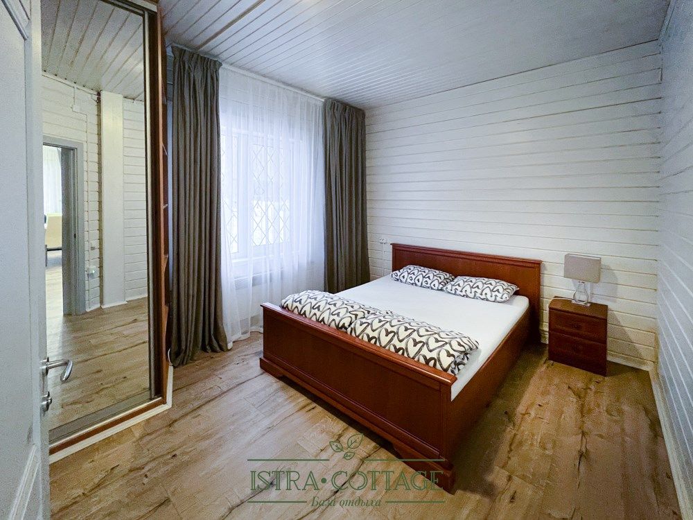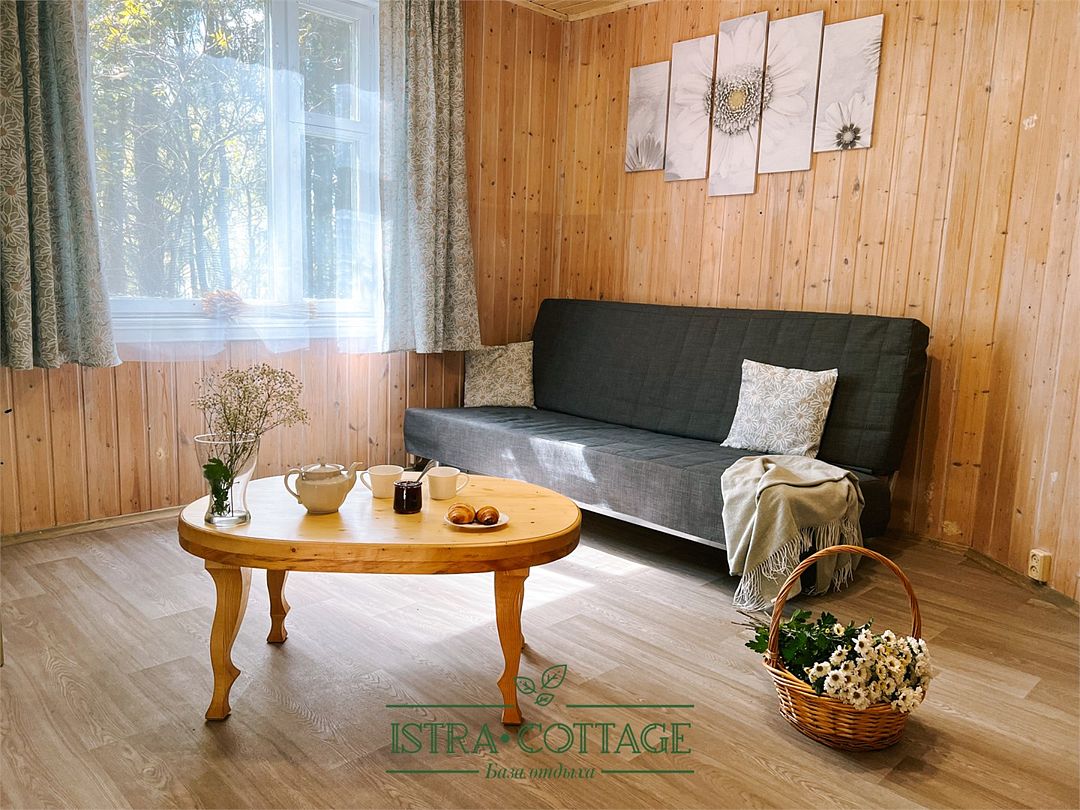 Уютный и комфортный дом с камином. Внутри: спальня, санузел и гостиная с панорамным окном. Мини-кухня с посудой, плитой, СВЧ-печью, чайником и холодильником. Тёплый пол, собственная мангальная зона. Из панорамного окна открывается вид на сосновый бор и Истринское водохранилище.