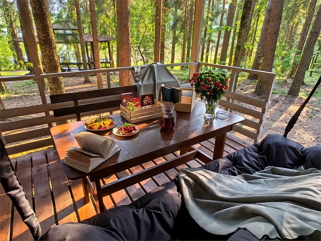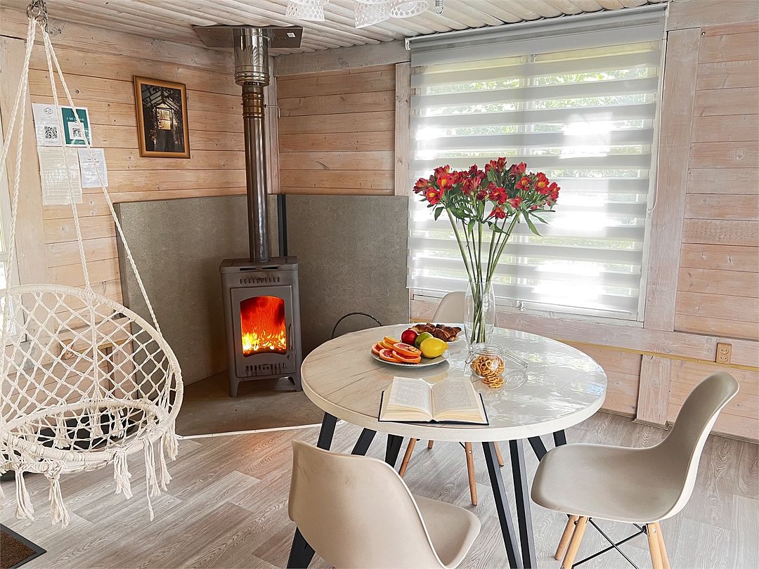 Уютный сезонный дом с закрытой верандой и камином. Подходит для комфортного размещения 4 взрослых и 1 ребёнка (до 12 лет).