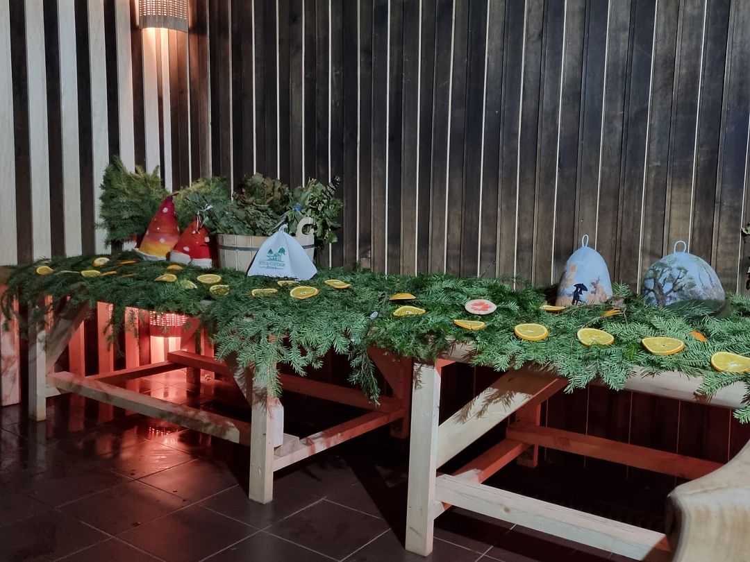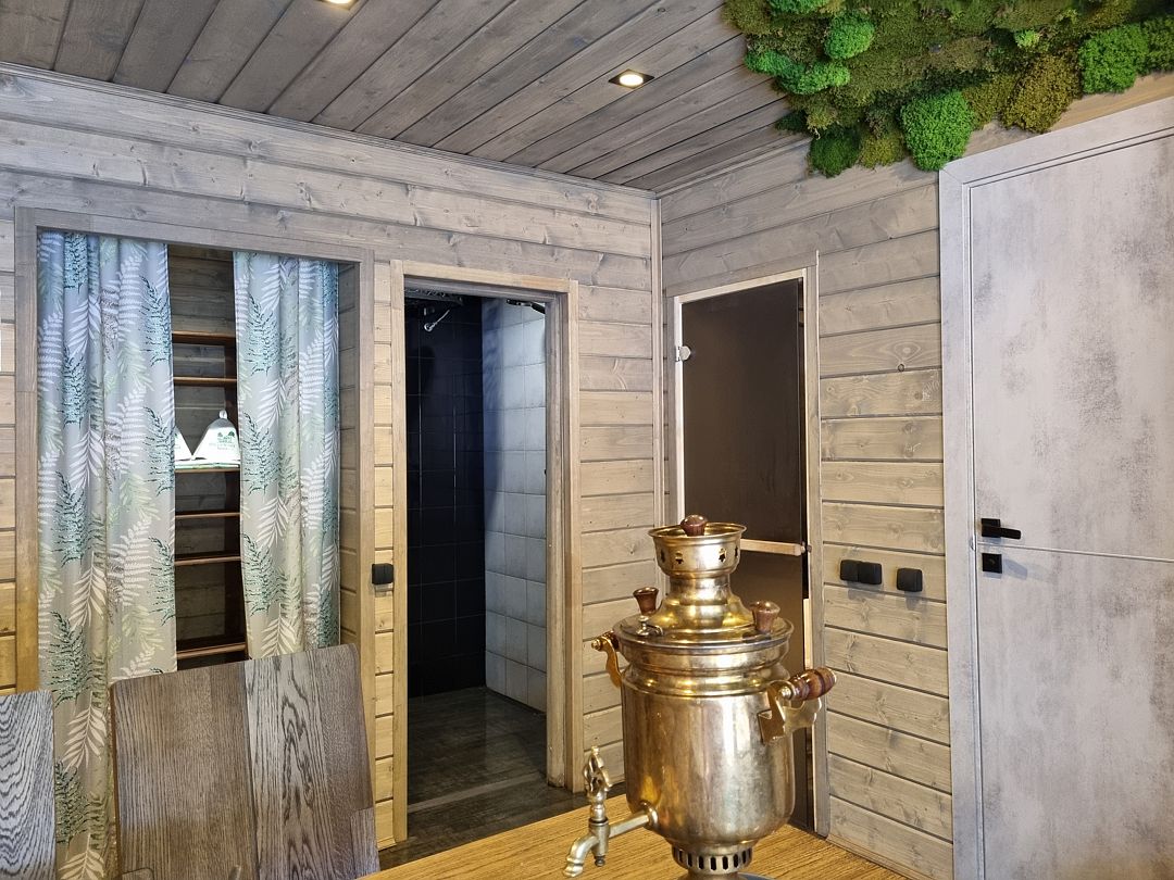 Порадует Вас также банный комплекс, который состоит из двух парных. Классическая Русская парная по-белому и уникальная Парная по-черному. В комплексе есть купель, которая наполняется чистой прохладной водой, печь-лежанка, на которой можно полежать отдохнуть после банных процедур. В ассортименте всегда большой выбор веников и запарников. А если Вам захочется выпить чая из настоящего дровяного самовара, то к вашим услугам 4 самовара на выбор, разных по объему, ароматные чаи на выбор, под заказ испечем вам пирог.
