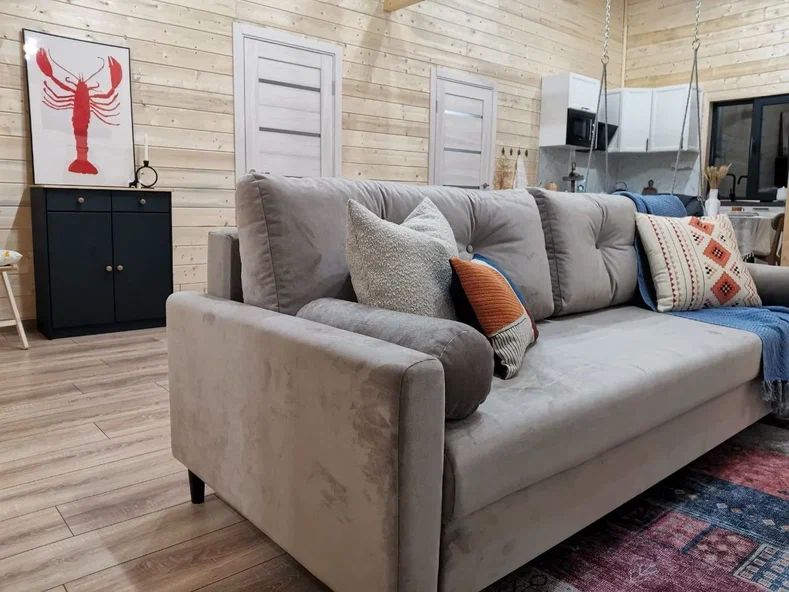 В доме две односпальные кровати и одна двухспальная кровать с удобными ортопедическими матрацами. В зале есть раскладной диван размером 135*195, где вы сможете отдохнуть и расслабиться.