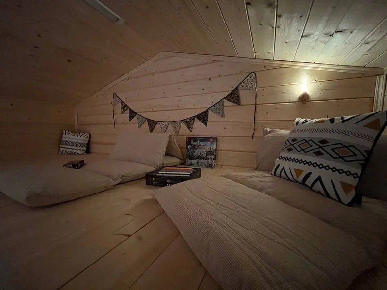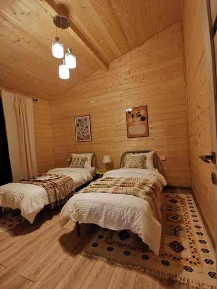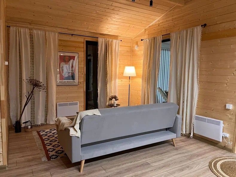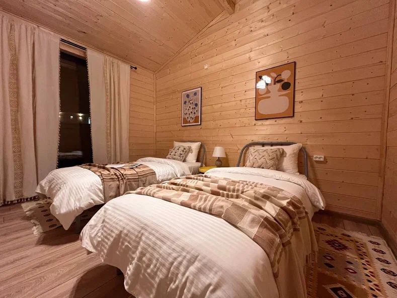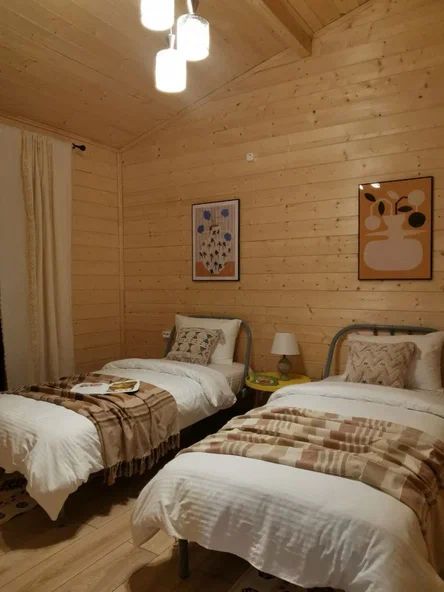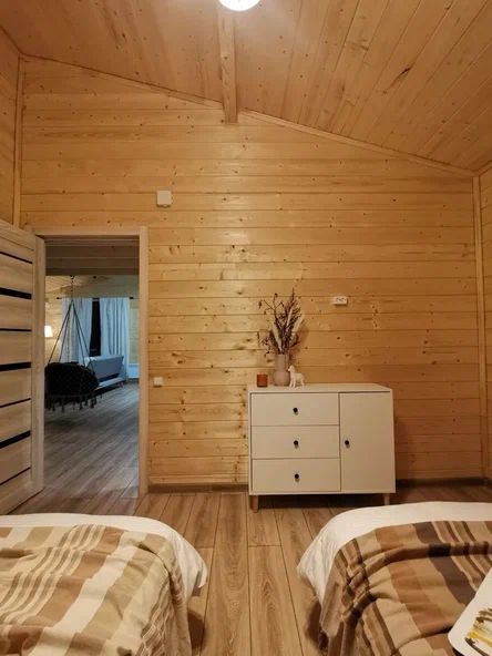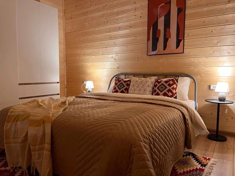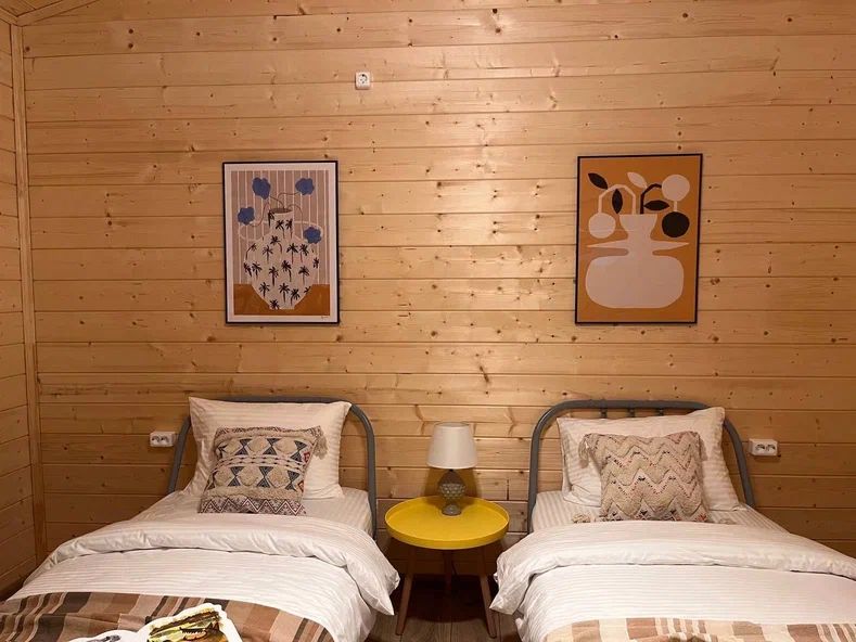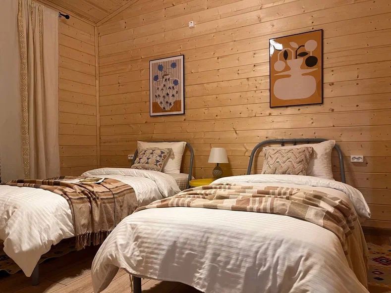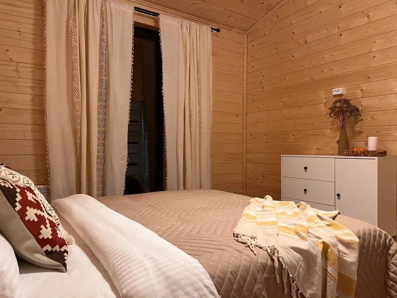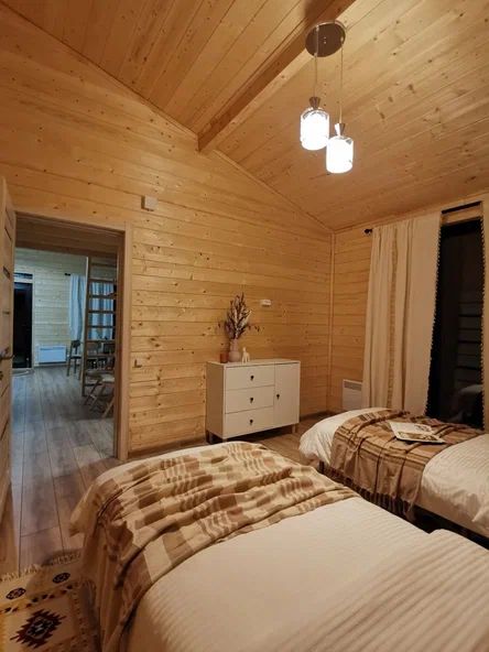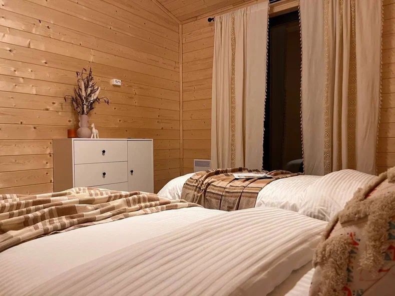 В доме две односпальные кровати и одна двуспальная кровать с удобными ортопедическими матрацами. В зале есть раскладной диван размером 135*195, где вы сможете отдохнуть и расслабиться.