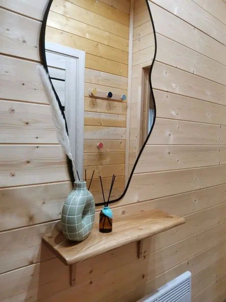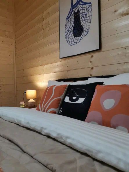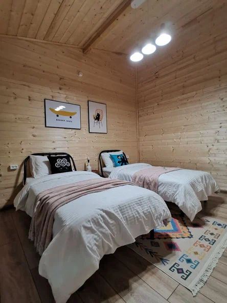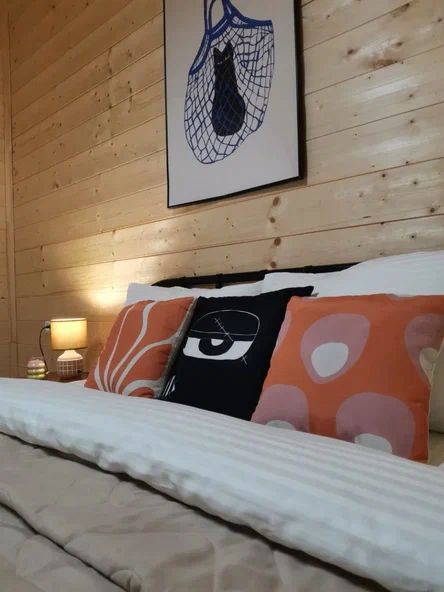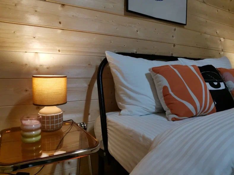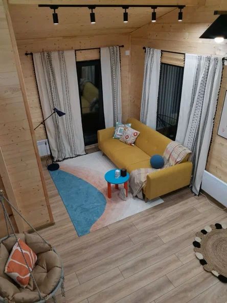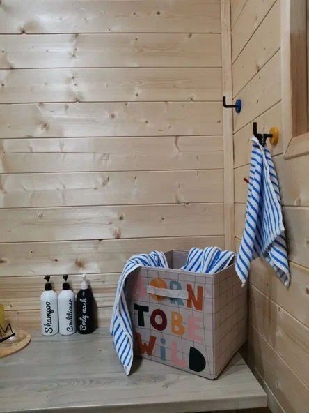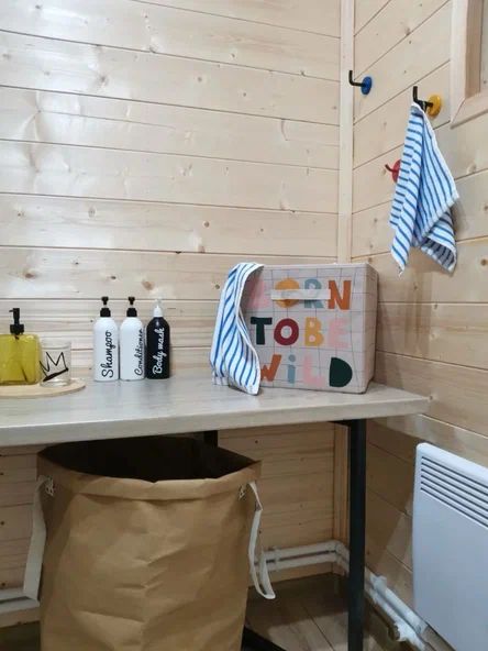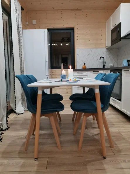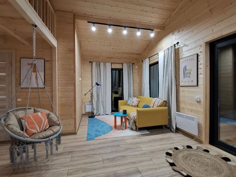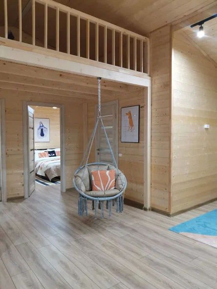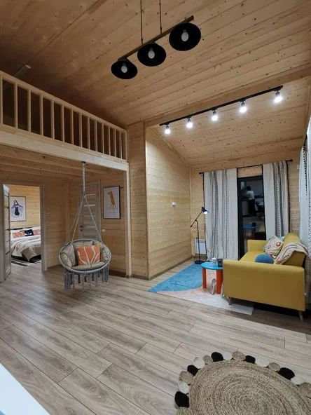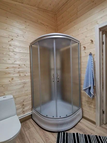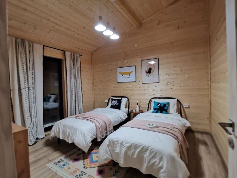 Внутри дома предусмотрены две односпальные кровати и одна двуспальная с ортопедическими матрасами для крепкого сна. В зале находится раскладной диван, подходящий для отдыха после активного дня. Кухня полностью оборудована всем необходимым для приготовления любимых блюд: варочной панелью, духовым шкафом и другой техникой. Посуда и столовые приборы на 6 персон предоставляются, а большой обеденный стол ждет для приятных бесед и угощений. На время отдыха доступен телевизор с онлайн кинотеатрами и настольные игры для всей семьи. Удобная душевая кабина в ванной комнате и необходимые средства личной гигиены обеспечивают комфорт.