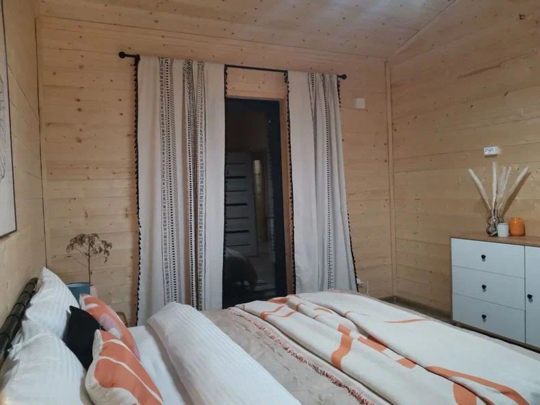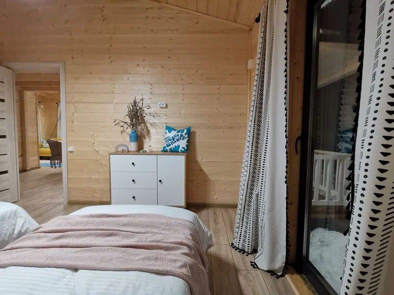 В доме установлены очень теплые электроконвектора, вам и малышам всегда будет очень тепло. В доме две односпальные кровати и одна двуспальная кровать с удобными ортопедическими матрасами, в зале есть раскладной диван размером 135*195, где вы сможете отдохнуть и расслабиться.